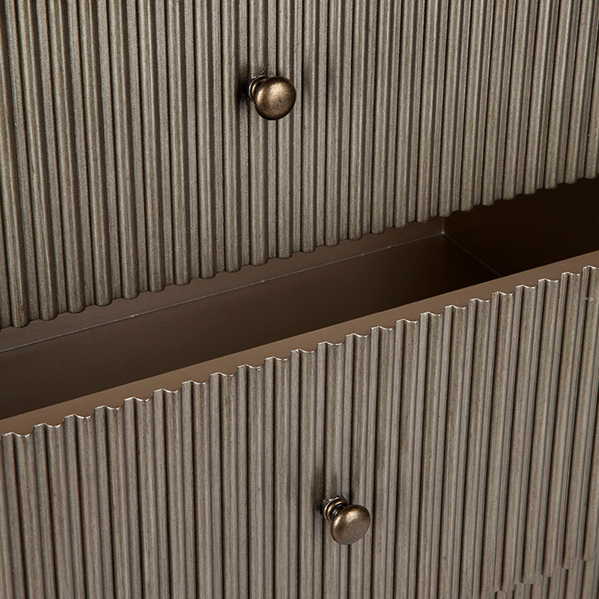 Featuring the same graceful curves as its peers, the Arielle 3 Drawer Chest offers an understated and contemporary take on a classic silhouette, paying homage to art deco design. Meticulously crafted with ribbed timber detailing, these pieces offer a timeless, quality finish. Sleek metal runners and graphic-styled handles complete the look, making Arielle an efficient storage solution for any space.