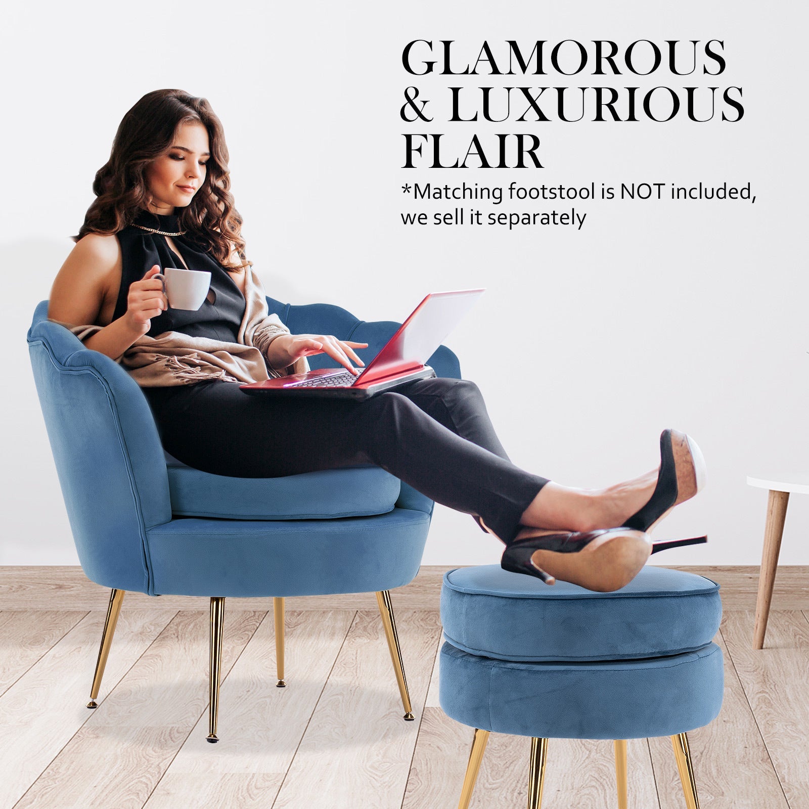 Armchair Padded Lounge Chair Accent Velvet Shell Scallop NAVY BLUE