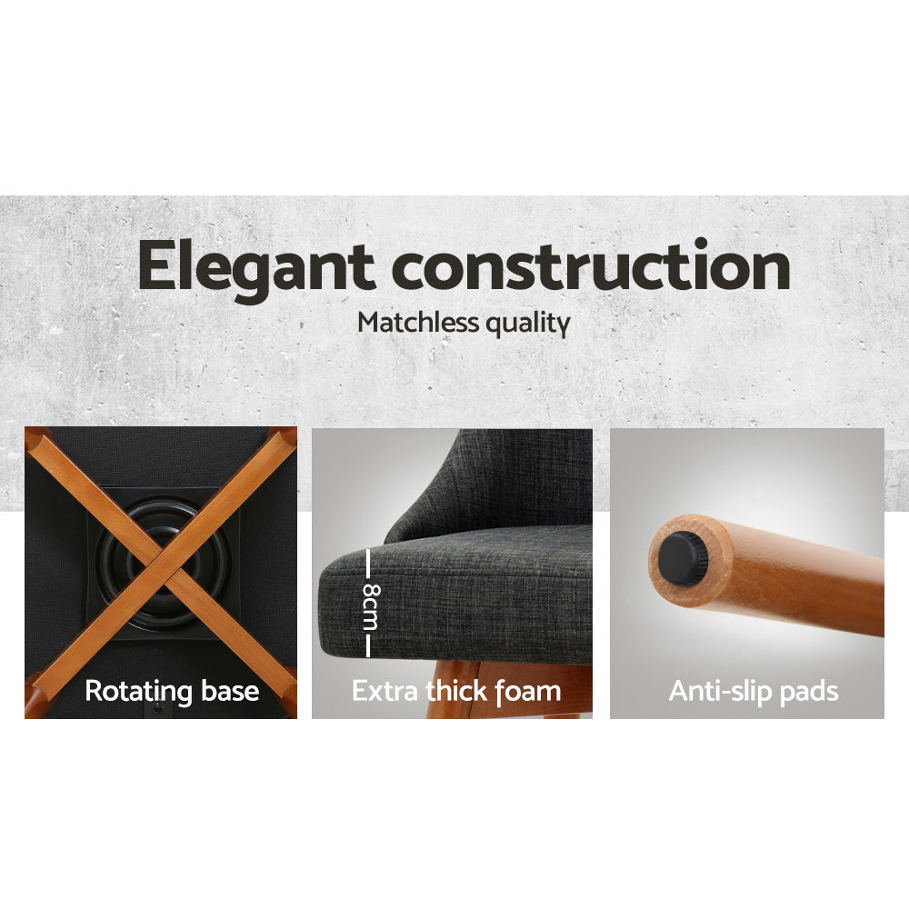 Artiss 2x Wooden Bar Stools Swivel Bar Stool Kitchen Cafe Fabric Charcoal