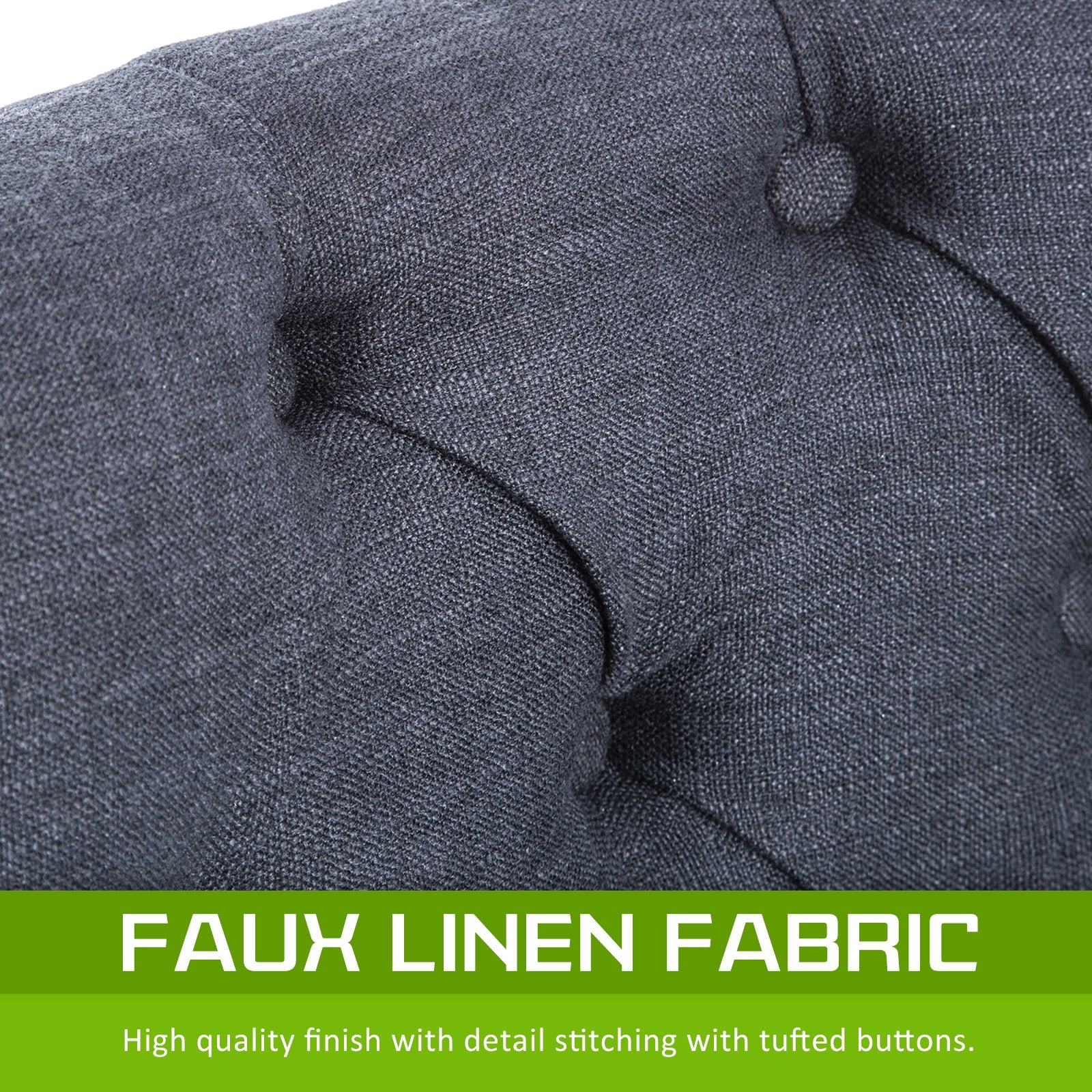 upholstered in a lovely neutral linen fabric and the back is buttoned