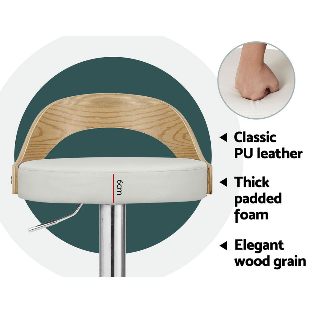 Artiss 2x Bar Stools Adjustable Leather Padded White