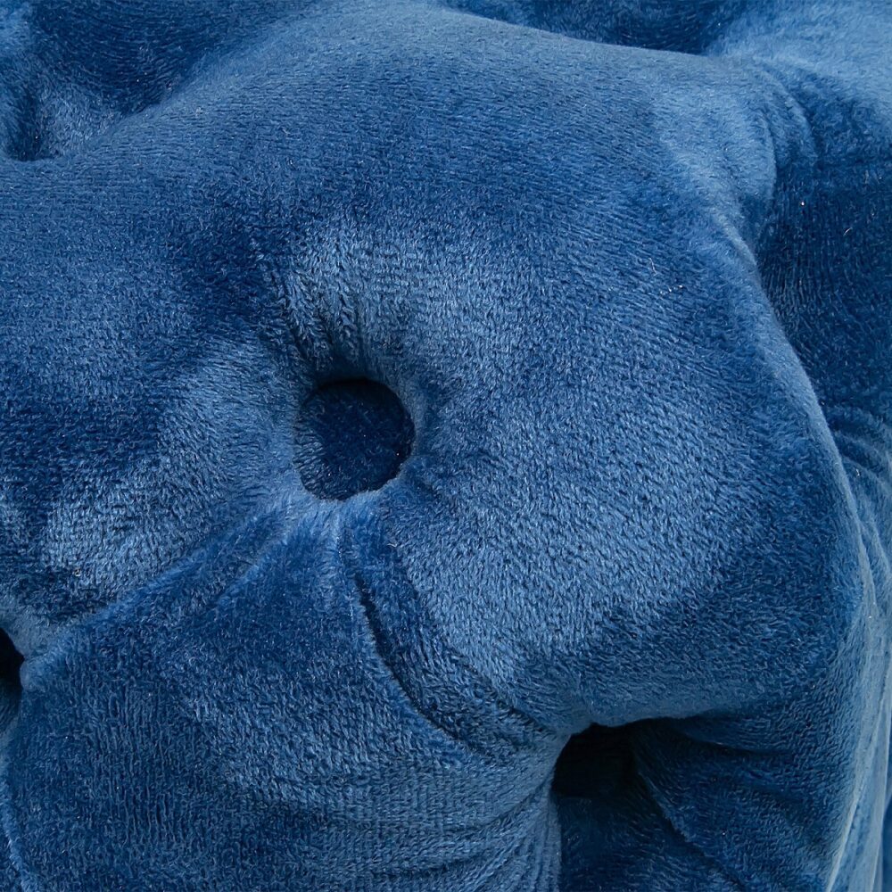 Elevate your living space with the Elsa Navy Blue Velvet Ottoman-Rectangular. This luxurious piece is handcrafted with upholstery velvet, adding a touch of elegance to any room. The plush, hand-tufted detailing makes it a perfect centerpiece for your seating arrangement. Use it as a footrest with your favorite accent chair or add a chic tray to transform it into a cozy coffee table. It also makes a stylish addition to your bedroom decor as a bed end stool.