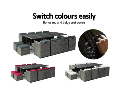 Gardeon Outdoor Dining Set 13 Piece Wicker Table Chairs Setting Grey