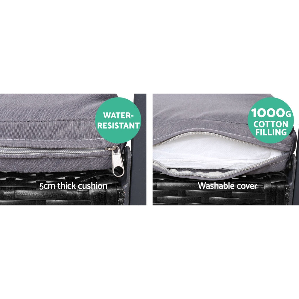 Introducing the Gardeon 4pcs Outdoor Lounge Setting Sofa Set Garden Patio Table Chairs, the perfect addition to any balcony or patio area. This elegant set features a sturdy powder-coated frame and UV-resistant PE wicker, ensuring durability and longevity. The ultra-comfortable 1000g cotton-filled 5cm thickness cushions and 5mm tempered glass table top add a touch of luxury to your outdoor space. The cushion covers are removable and washable for easy maintenance, making this set a practical choice for any home.