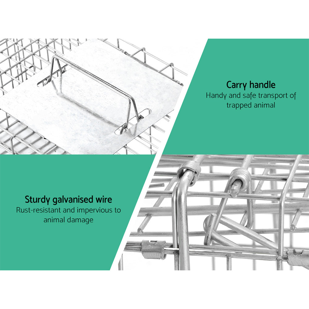 Something's being raiding the chicken coop? Or getting into your kitchen via openings in the house? You suspect that it's an animal and thinking about a humane way of catching it. Let us help you out with our Humane Animal Trap. Designed to capture the animal live without hurting it, our eco-friendly Animal Trap is made of rust-resistant galvanised iron that features a spring-loaded door trap that only allows access in one direction. It has an automatic locking system that prevents the animal from getting out once it is inside the cage. Setting the trap is easy and a strong handle makes carrying the live capture safe for both animal and person. When not in use, the Trap can be collapsed and stored away. Please do check with your local authorities on animal trapping rules and regulations before use.