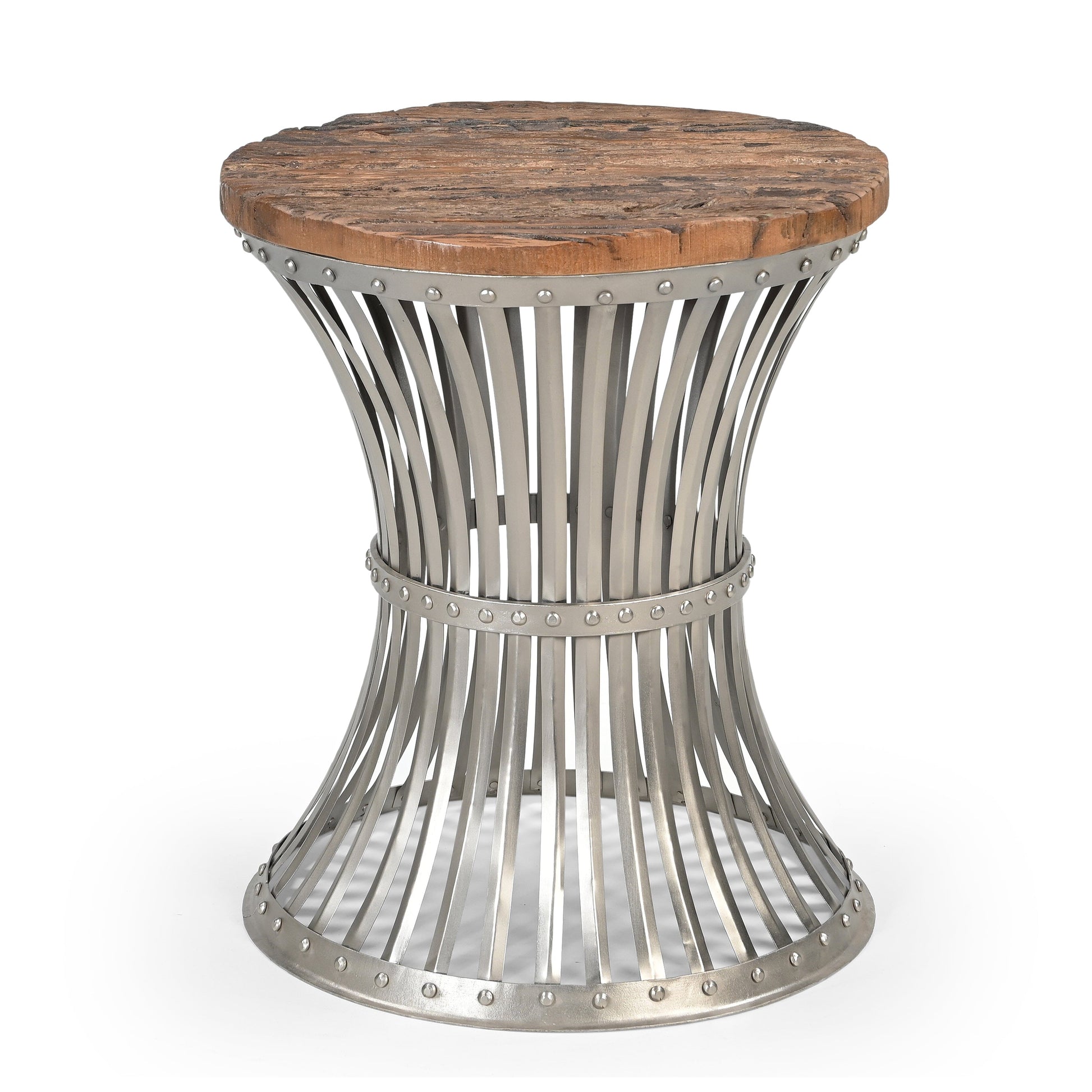 Our Inverted Iron and Wooden Side Table is a beautiful addition to rustic interiors and outdoor areas that take inspiration from far away, exotic places. Hand crafted, shaped and assembled from cast iron, this side table has also been set with a contrasting but complementary wooden top, made from reclaimed railway sleepers, with a rustic finish. The final product is a gorgeous mix that will stand out in every setting.