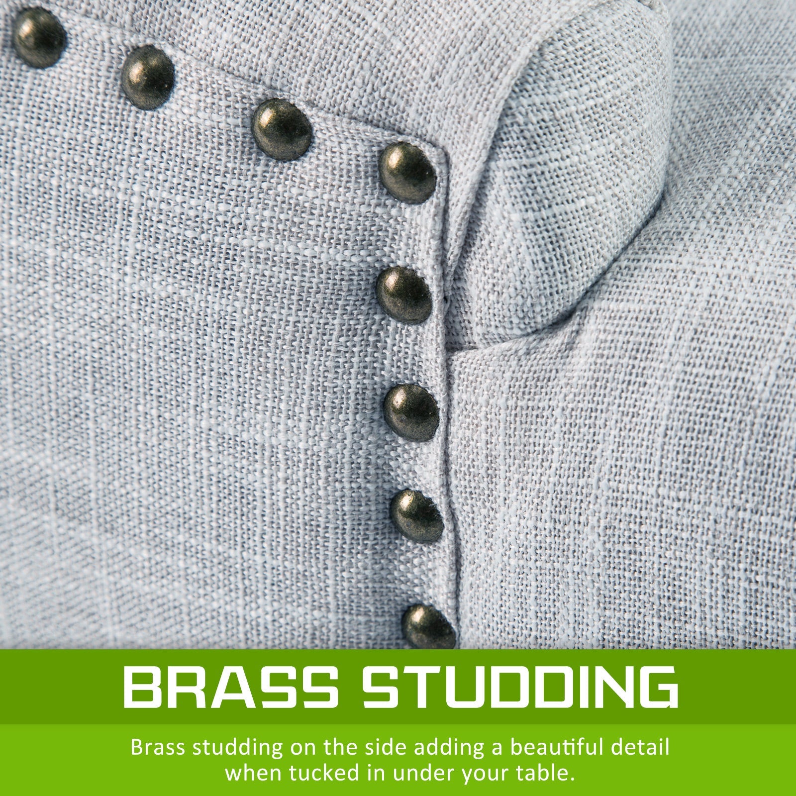 - Upholstery Fabric: High-quality linen fabric with brass studs