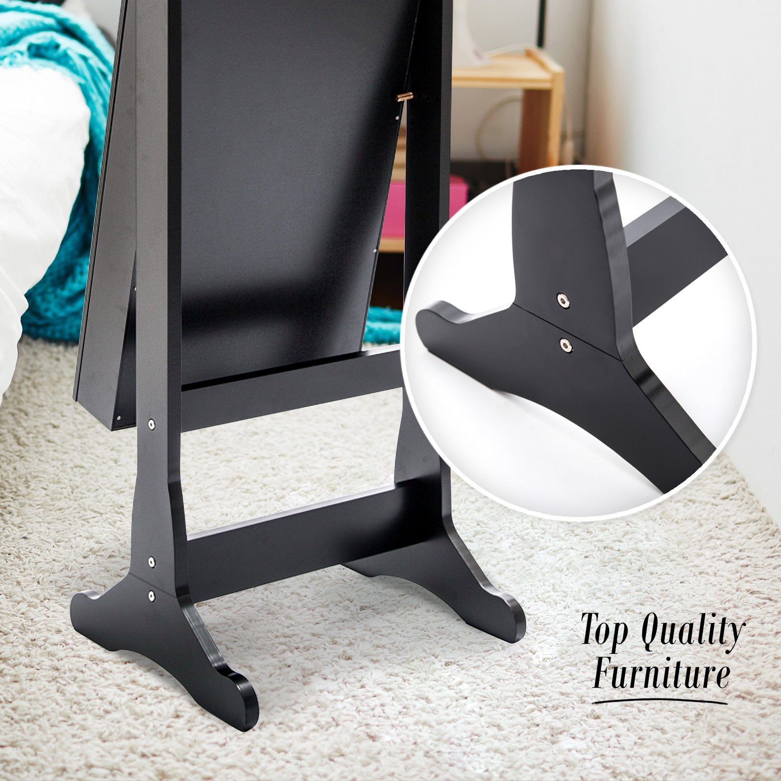 The mirror is crystal clear and easy to clean too! You can tilt it to different angles so you will not miss out anything when dressing up! There is a catch bar on the bottom, so it prevents the mirror from tilting too far forward. The cabinet is made of high-quality wood composites and veneers so it will sure give you a great service life!