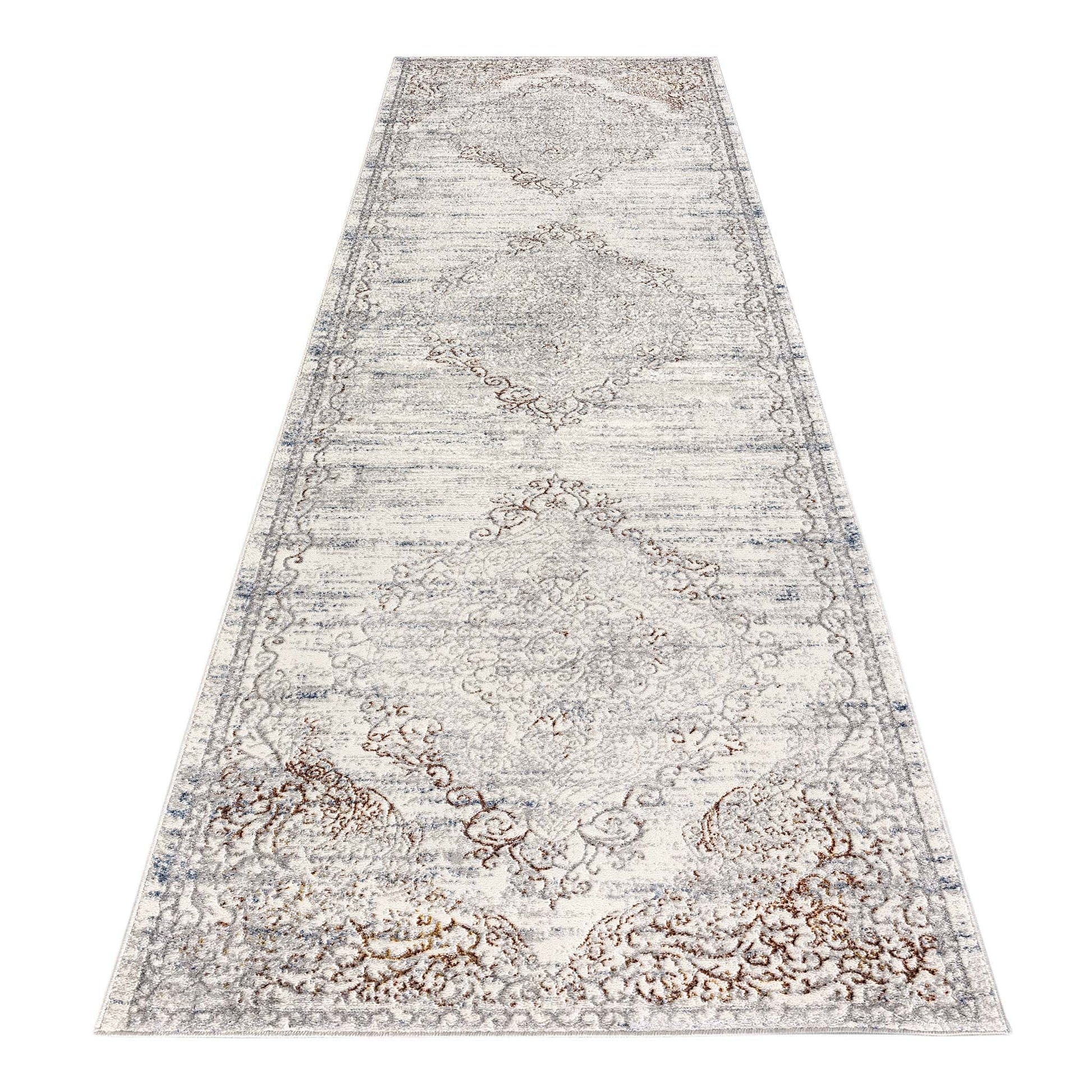 This Luxe Vintage Textured Rug in Cream is the perfect addition to any traditional or French country home. With a distressed Oriental-inspired design, this rug adds a touch of elegance to any room. Made from soft-touch polyester, it is durable and easy to maintain, making it ideal for high-traffic areas. The harmonious, soft tone color-scheme used in this rug makes it suitable for a variety of interiors. It is power-loomed in Turkey and has shed-resistant and anti-static properties. The Charm Collection features versatile designs on multi-textured, stain-hiding backgrounds. The rug has a pile height of 10mm and a total thickness of 12mm, with a density of 256.000 points per square meter. It is constructed with a jute and cotton backing and does not have fringes. Made in Turkey, this rug is a beautiful addition to any home.