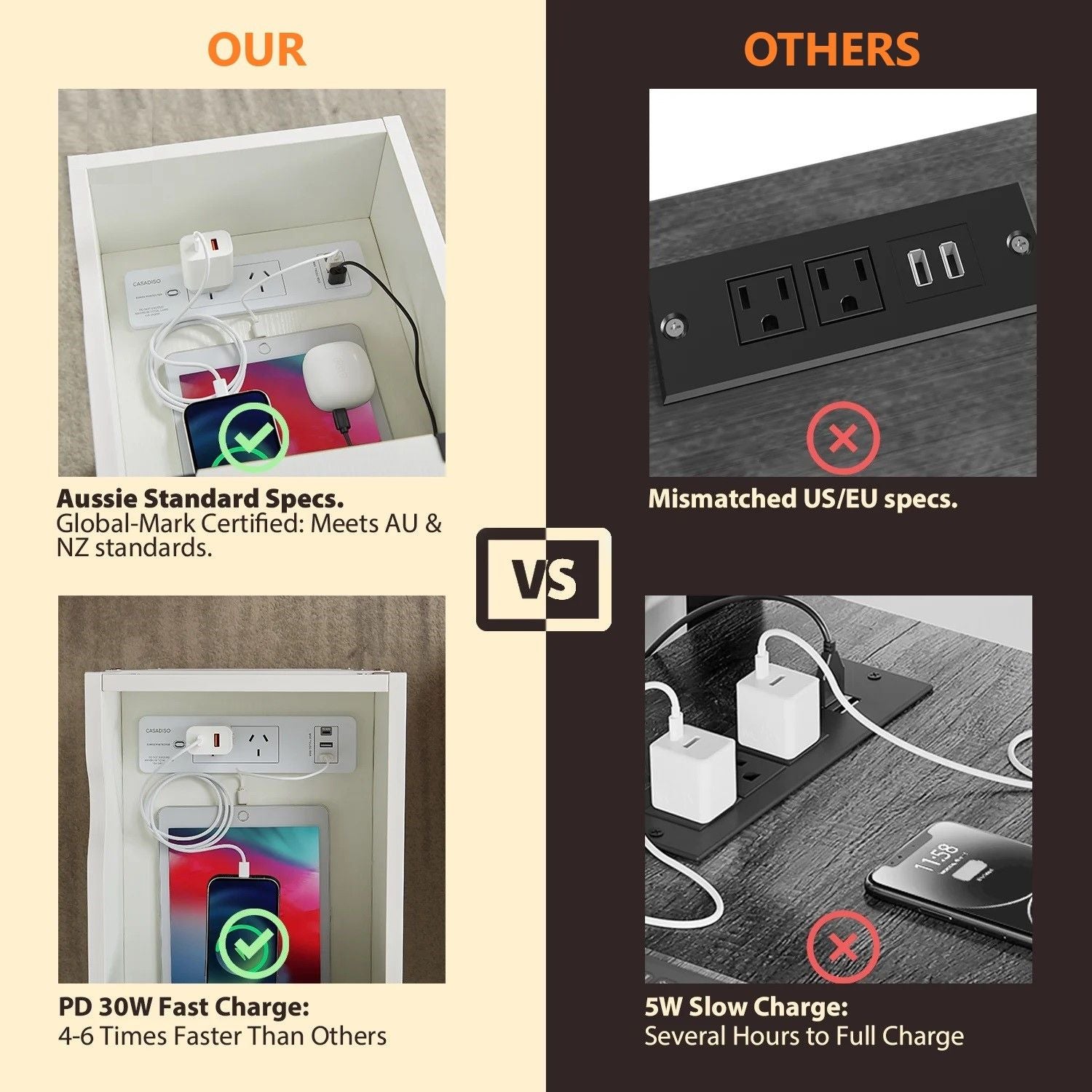 - Convenient built-in powerboard for charging up to five devices simultaneously