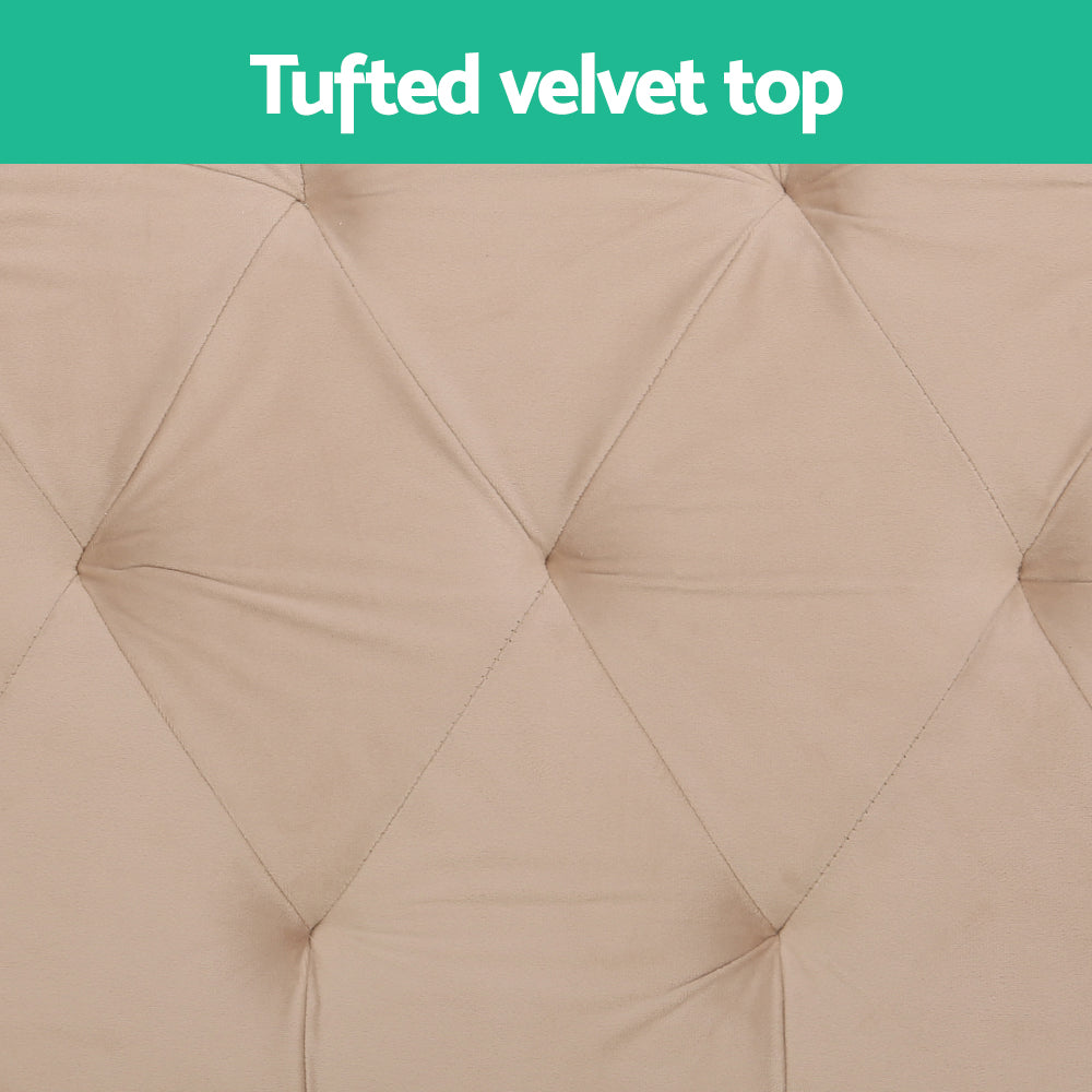 Look no further than the Noel Storage Bench from Artiss for storage with style and functionality. Constructed from a solid pine and fir wood frame with woven panels, the bench suits homes with a rustic, boho or Hampton's aesthetic. The tufted velvet top is filled with high-resilience foam for a comfortable, durable seat. Detach the top lid and find a generous storage space to fit clothes, toys, pillows, blankets and more. The sturdy metal legs keep the bench standing tall under pressure. The seat can support up to 100kg, while the storage compartment will support up to 80kg. Strong, stable and long-lasting, the Noel Storage Bench is the perfect solution to your living room storage woes. Get yours today.
