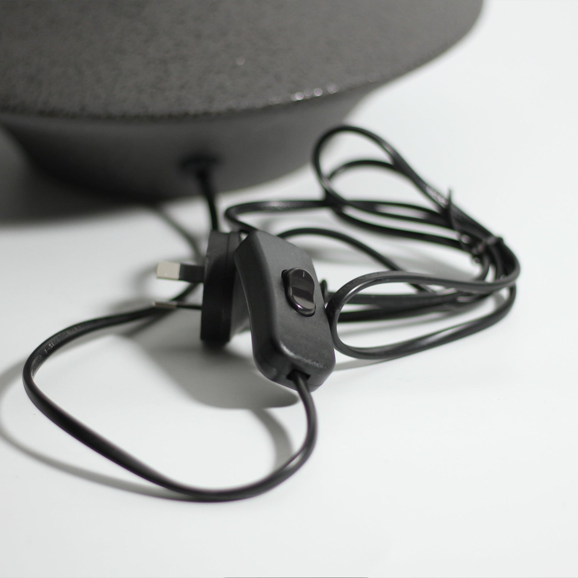 The base of the Symfonisk Table Lamp is made of ceramic and comes in a sleek black color. The shade is a classic drum shape and is white in color. The lamp requires an E27 bulb, which is not included. It has a single light and a maximum wattage of 60W. The lamp is corded and has an on/off switch located on the cord for easy access. The black cord adds to the lamp's overall sleek and modern look.