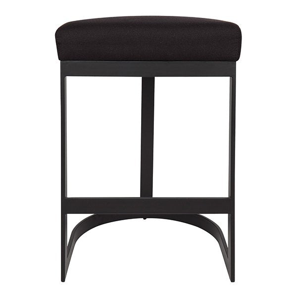 The Brooke black kitchen stool is a black linen upholstered kitchen stool with black coloured steel frame legs.