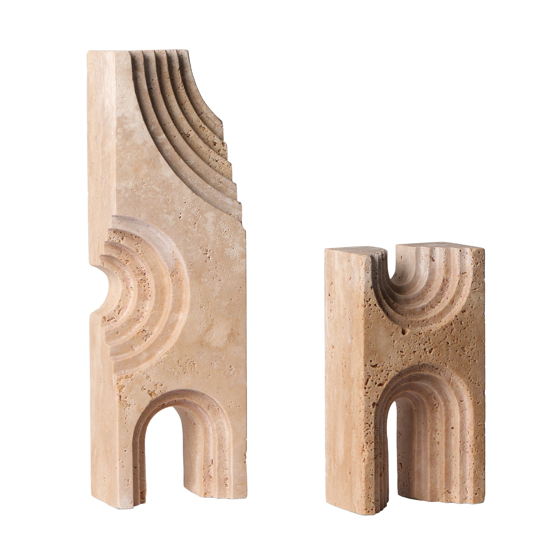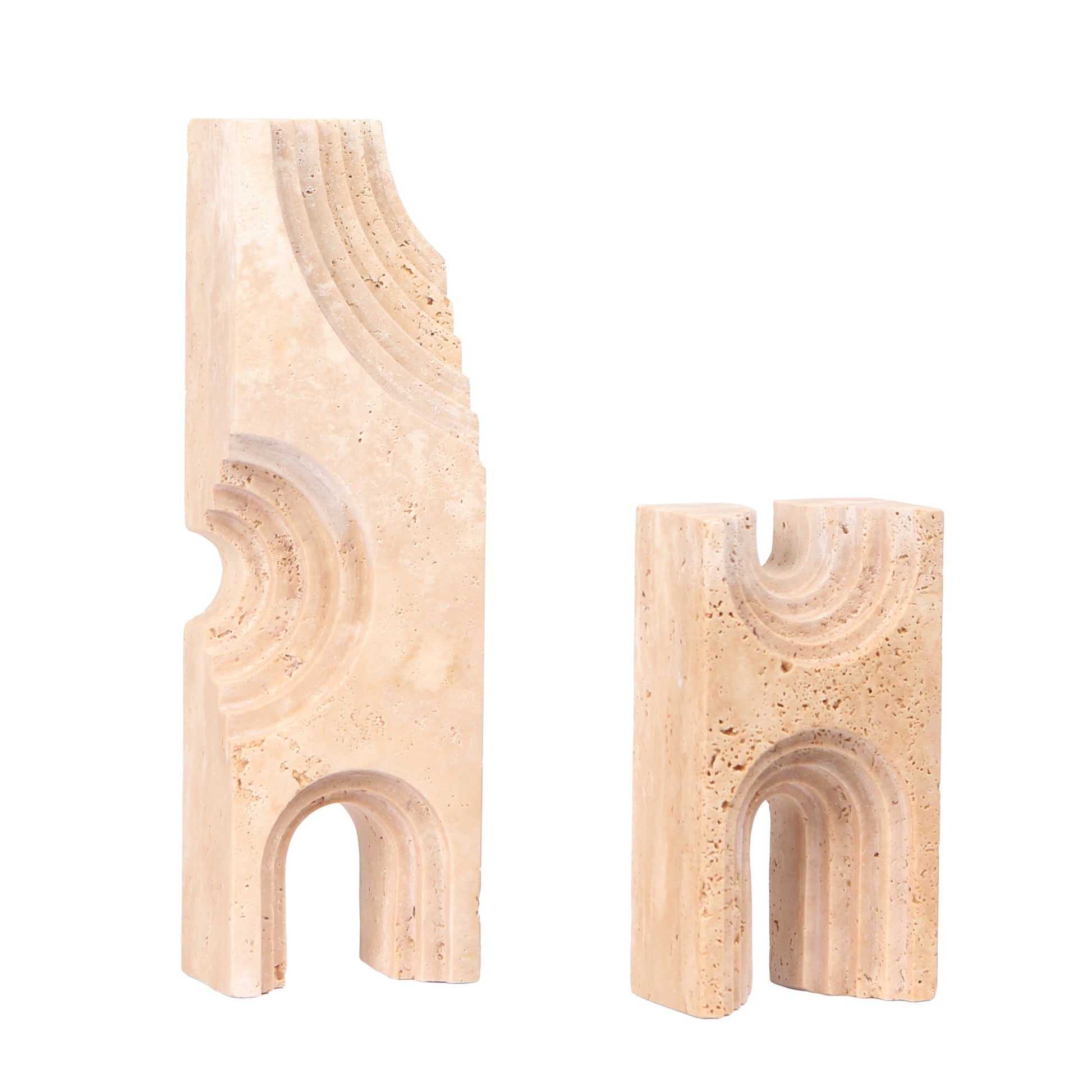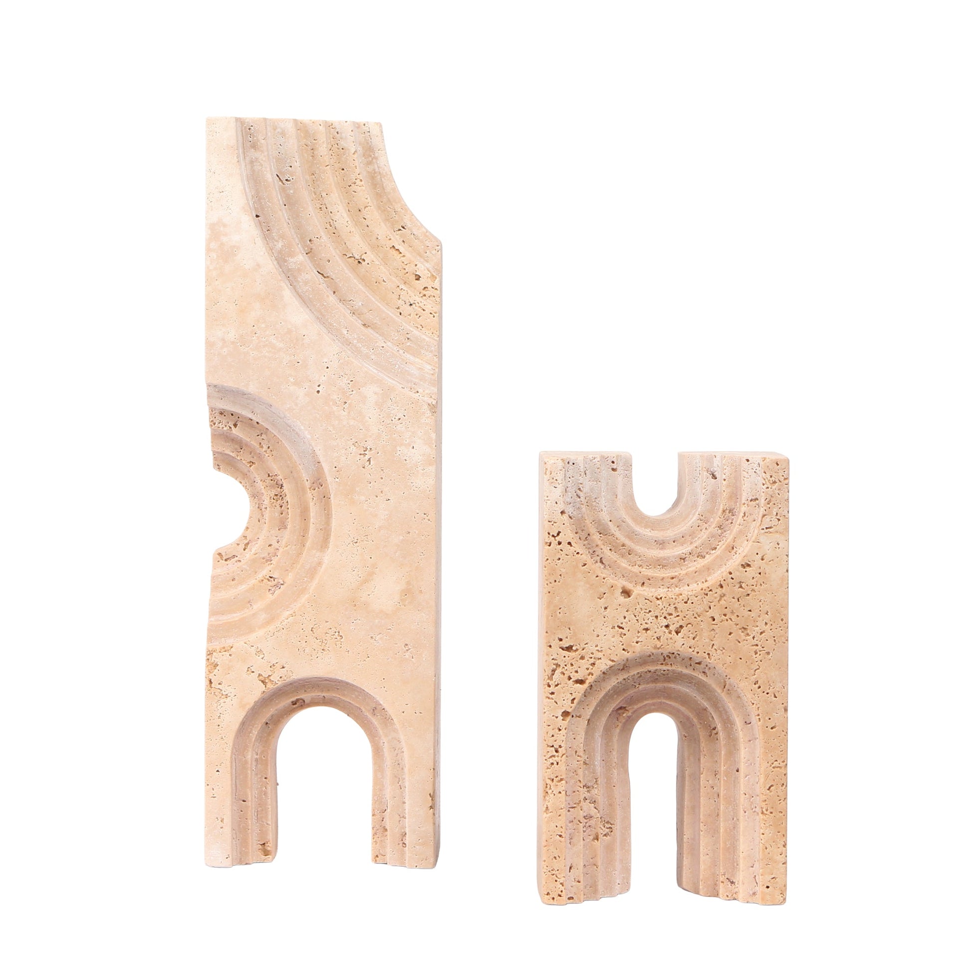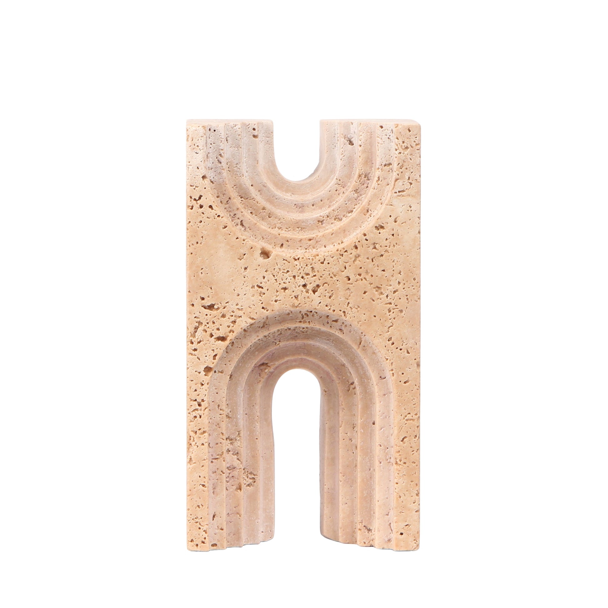 Balancing form and texture, CAC10706-KM Carved Marble Sculpture in Beige sculpture showcases the tactile beauty of hand-carved marble. Its surface reveals the intricate patterns and natural pits inherent to the stone, adding character and authenticity.