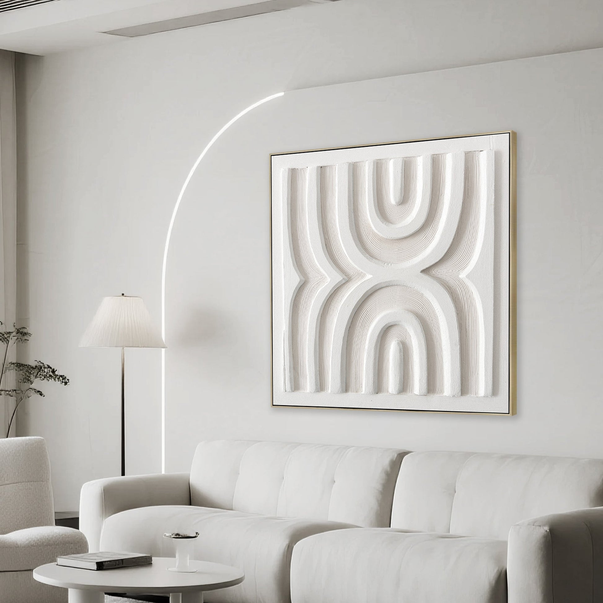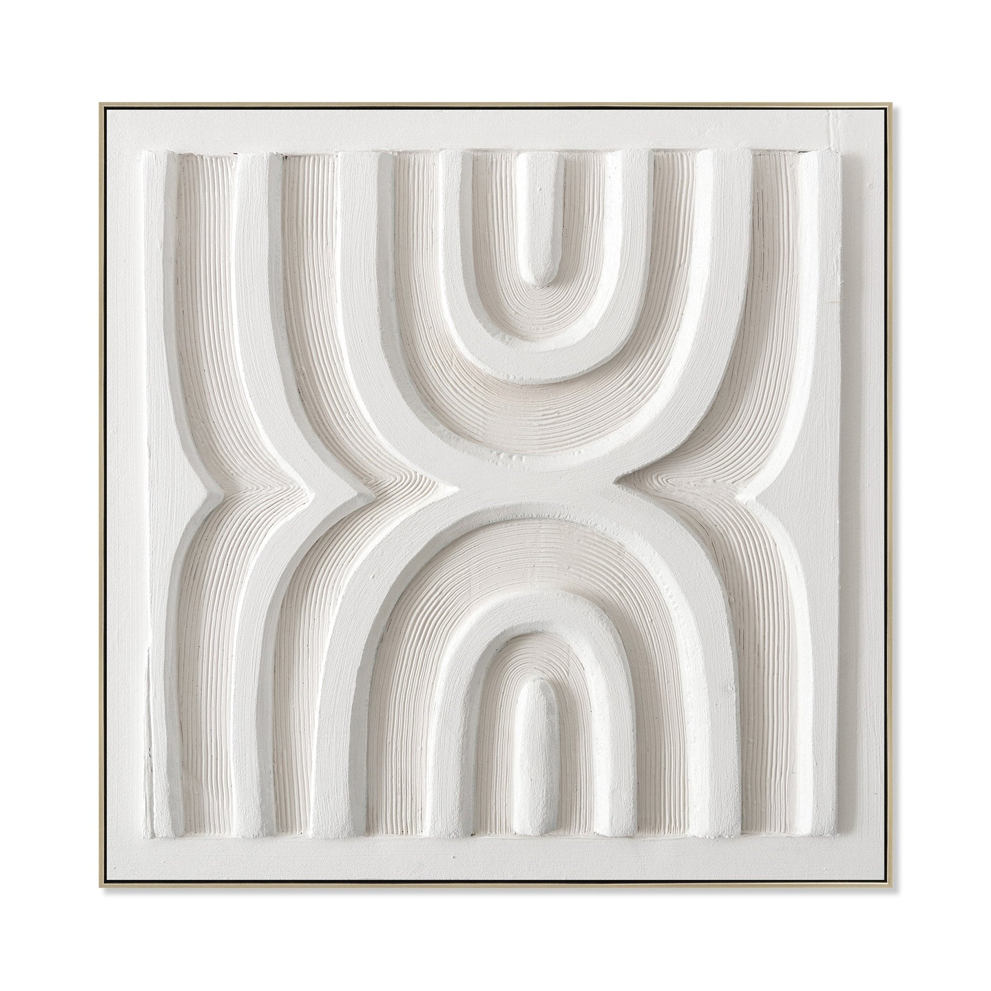 Transforming simple geometry into a striking statement, CAR12191-CLO 80 x 80cm Framed Canvas in Natural features arched patterns and layered textures that bring depth and sophistication to modern, minimalist interiors.