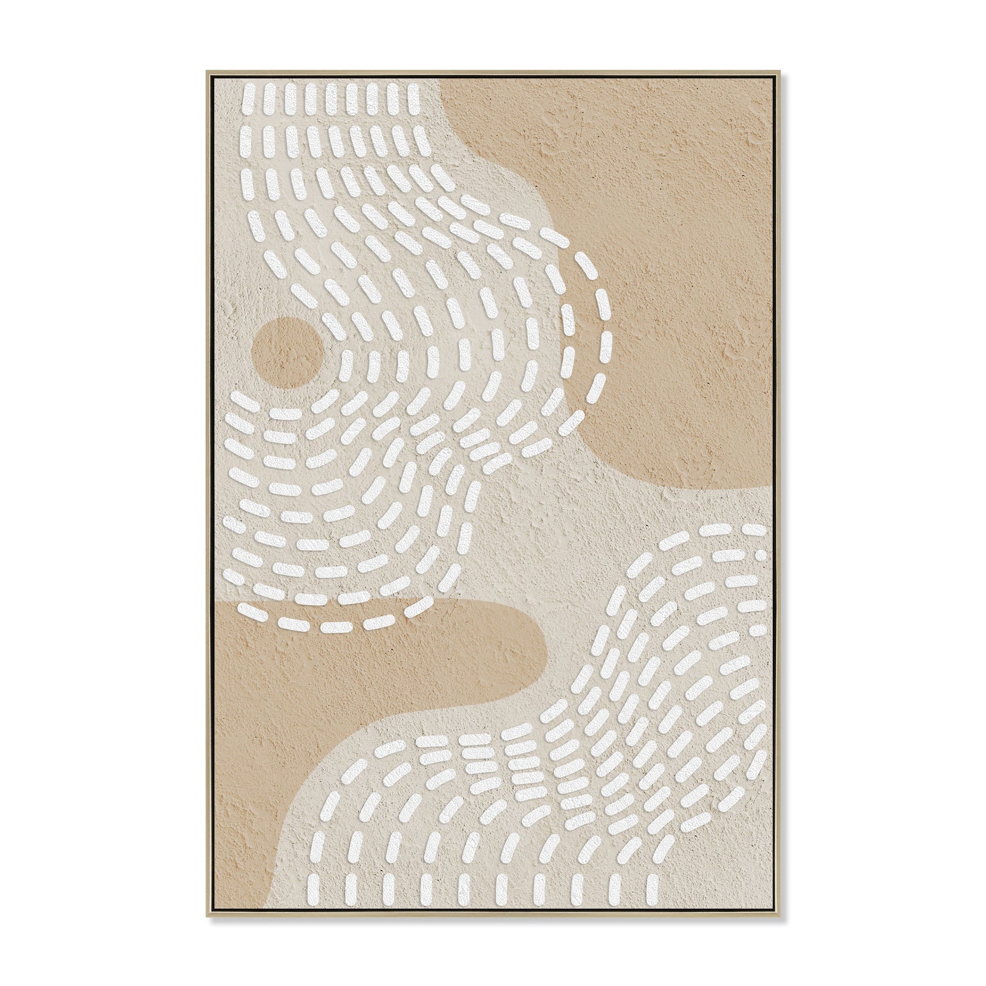CAR12203-CLO 80 x 120cm Framed Canvas in Natural features organic forms and rhythmic patterns inspired by sun and sand. The tactile surface and tonal contrast create a soothing visual rhythm, ideal for adding subtle movement and warmth to contemporary interiors.
