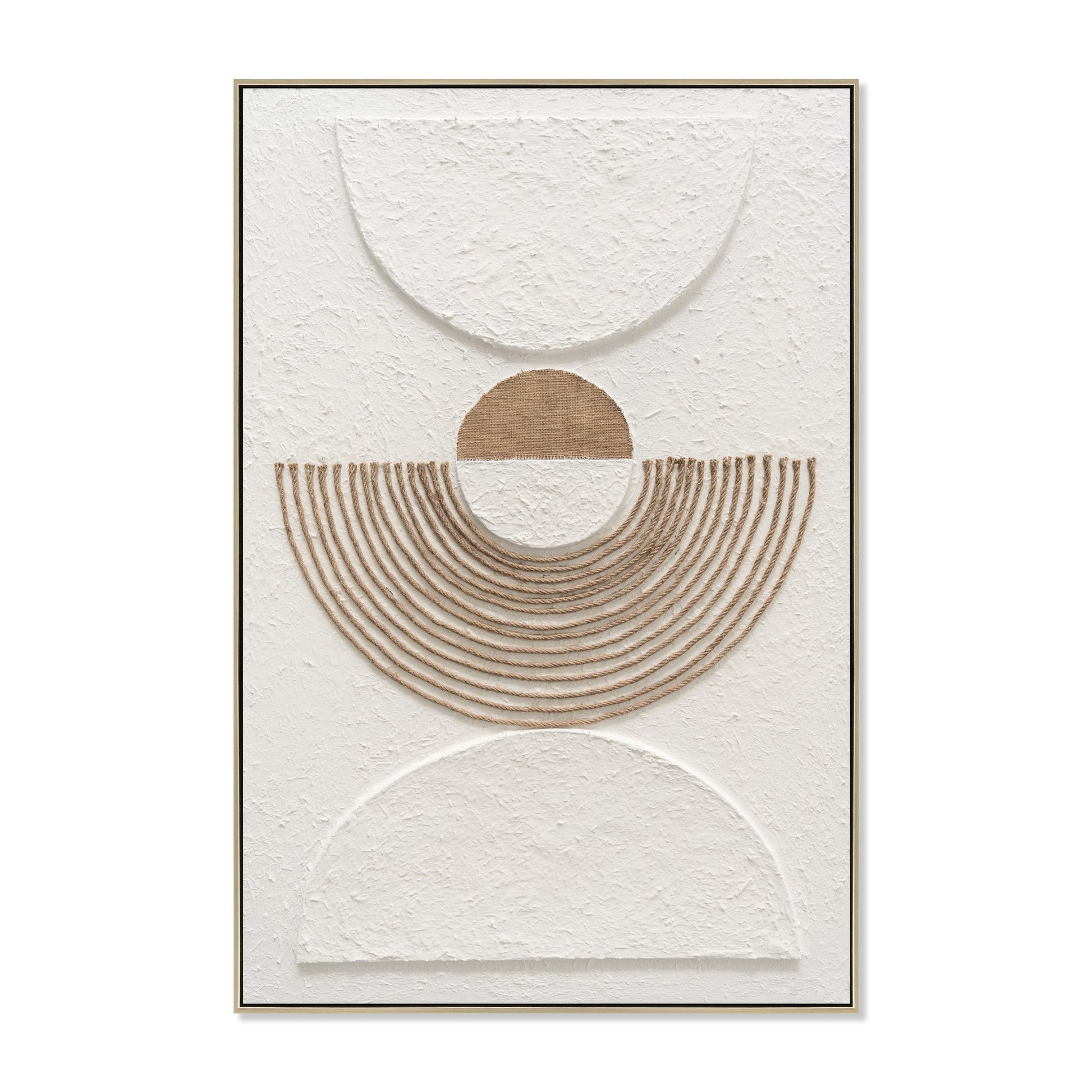 Layered semicircles and natural textures create a sculptural harmony accentuated by tactile rope detailing. A serene statement for both modern and organic spaces, CAR12205-CLO Style A 80 x 120cm Framed Canvas in Natural embodies balanced elegance.