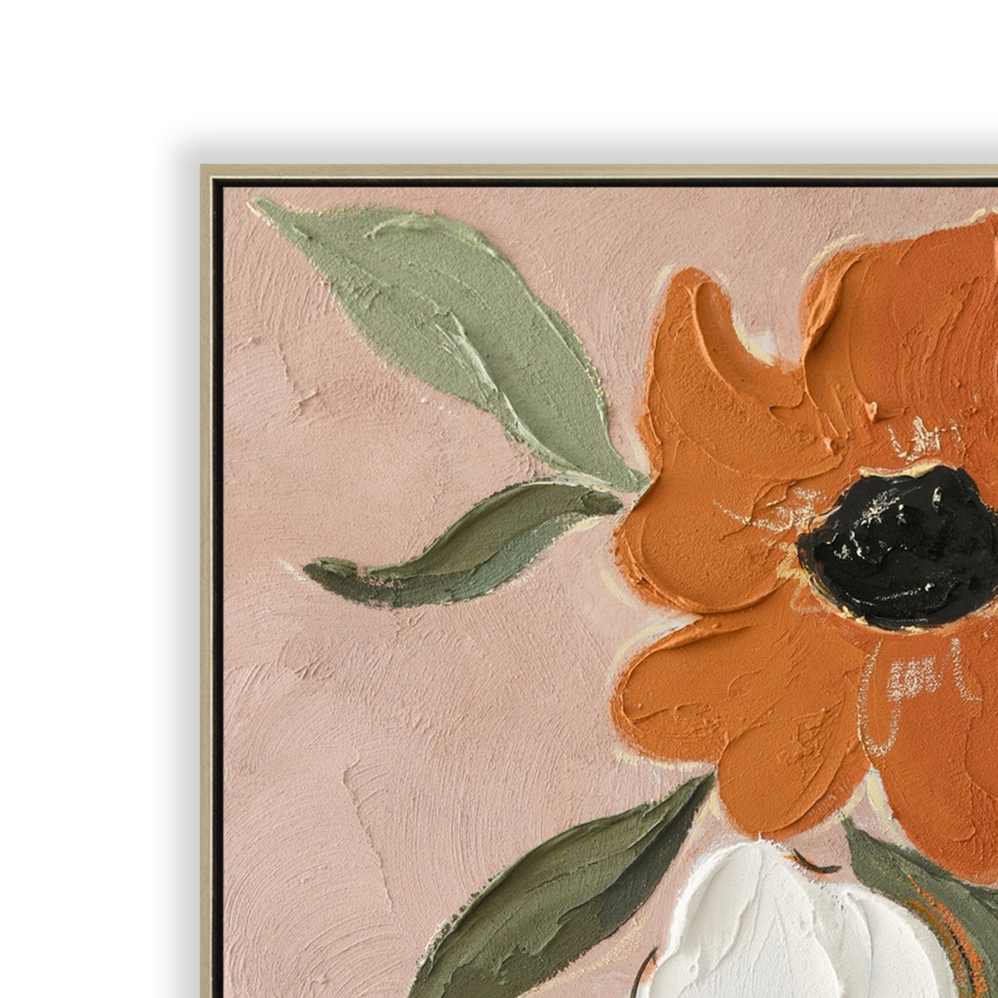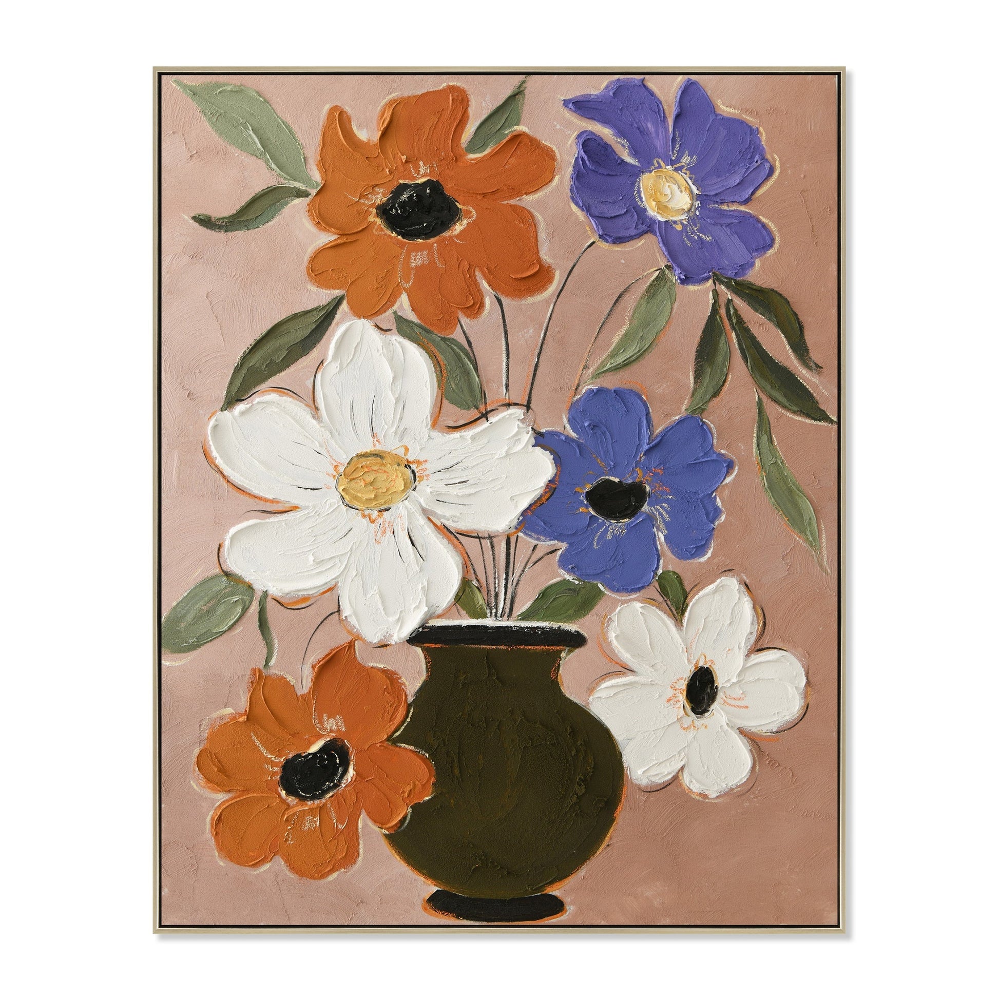 Celebrating colour and texture with expressive blooms in warm terracotta, ivory, and blue, CAR12217-CLO 80 x 100cm Framed Canvas in Natural features layered acrylic strokes that add depth and movement. Its lively, hand-painted look brings character and charm to any interior.