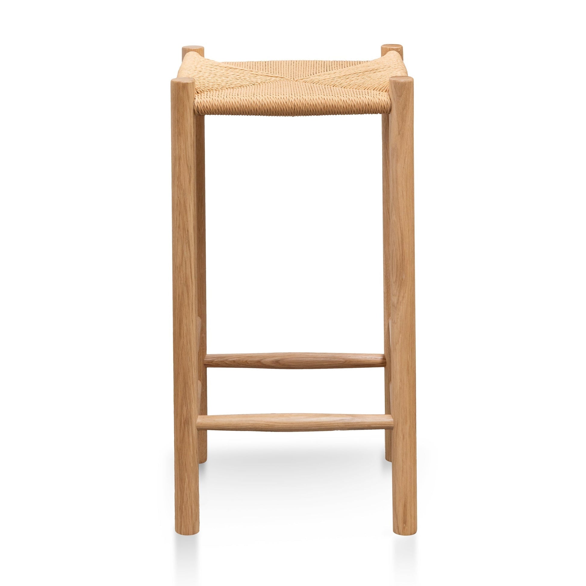 Bring home modern coastal edge with the woven paper cord features of the CBS2977-OW 65cm Oak Bar Stool - Natural. Finished in a natural colour palette and sleek lines, the stool is a simple form, made to last and to be enjoyed. Infused with effortless design and minimal style, the bar stool will immediately further your dining room aesthetic.