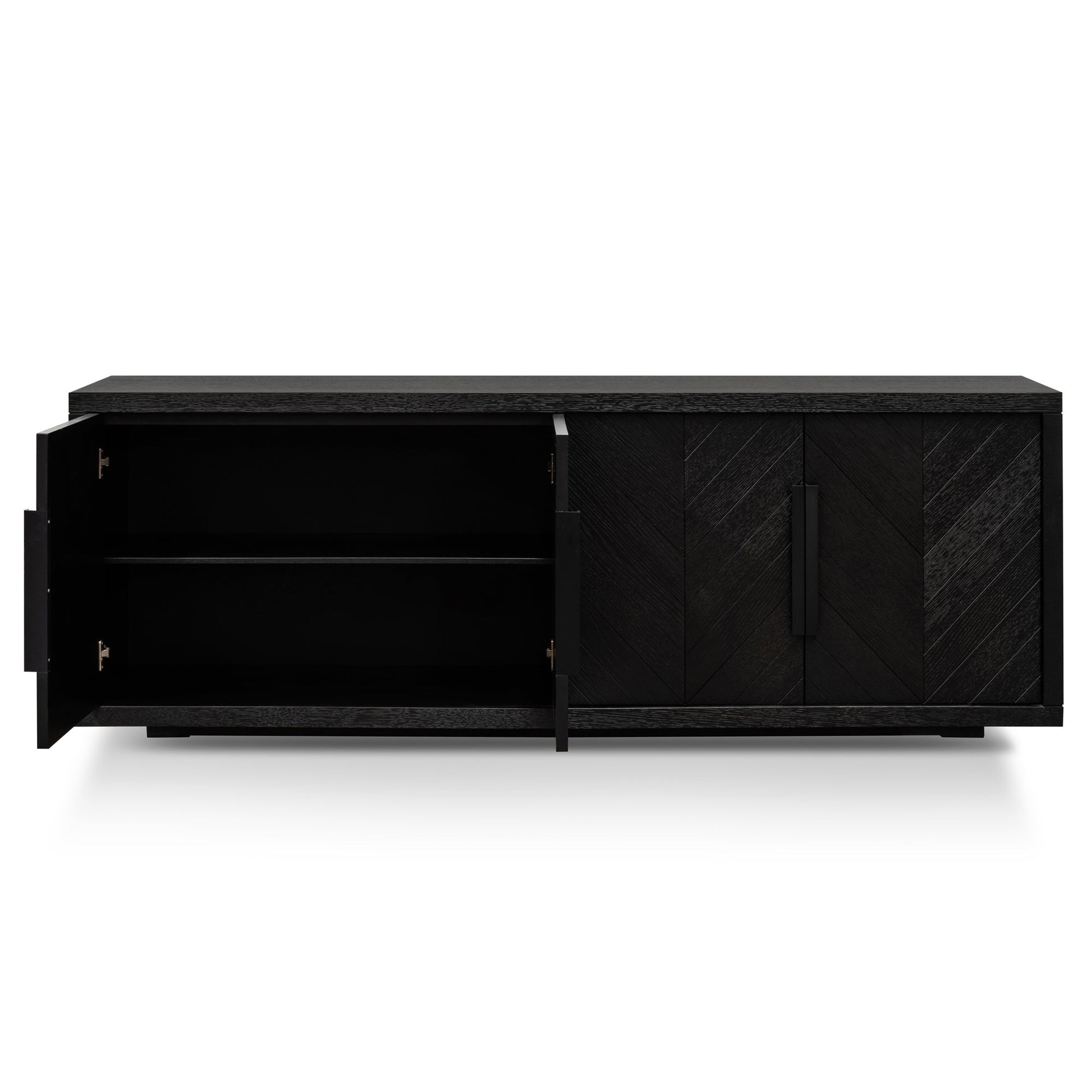 Introduce a slender storage solution into your home with the CDT2908-VA 2m Buffet Unit - Textured Espresso Black . Imbue luxe looks and moody aesthetic with this in-style buffet. Showcasing matte black handles and unique oak design, you'll be able to organise, and enjoy natural style.