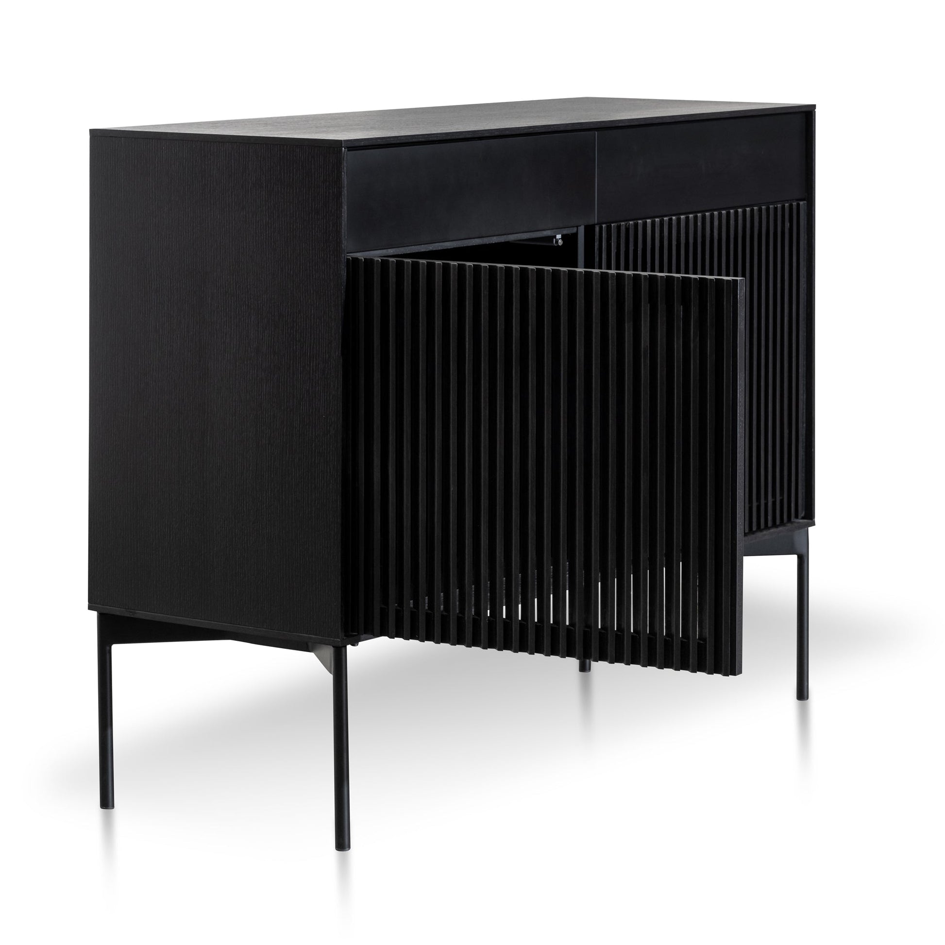 Subdue your living space with the monochrome ambience of the CDT2916-DW - 110cm Wooden Sideboard Unit - Black Oak