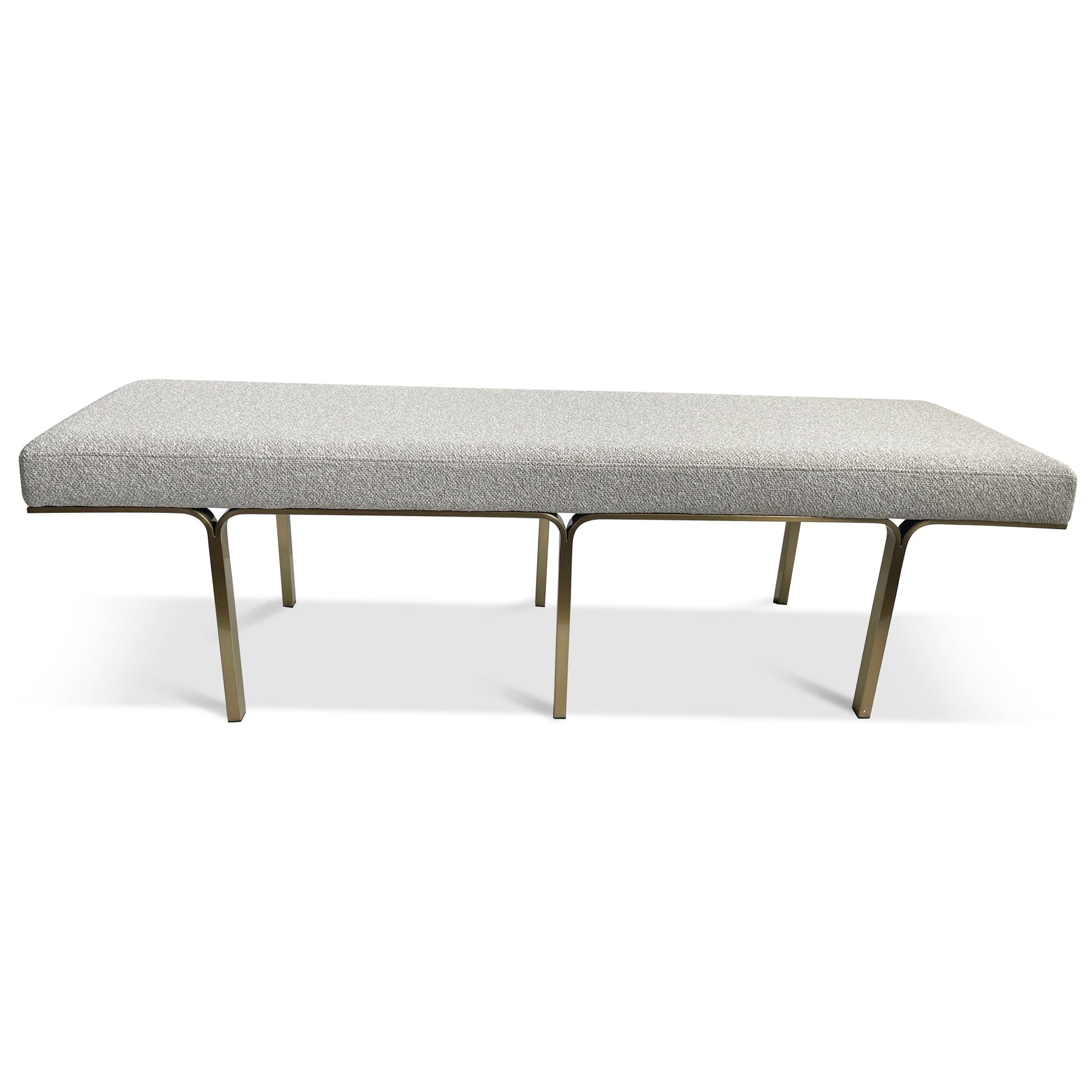 Introducing the CLC10098-KS 1.5m Brushed Gold Ottoman in Clay Grey, where luxury meets modern design. Its brushed gold details and elegant clay grey upholstery effortlessly elevate your living space.