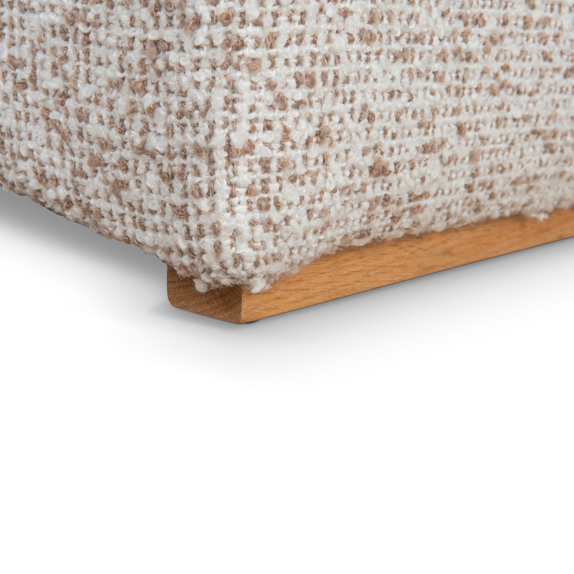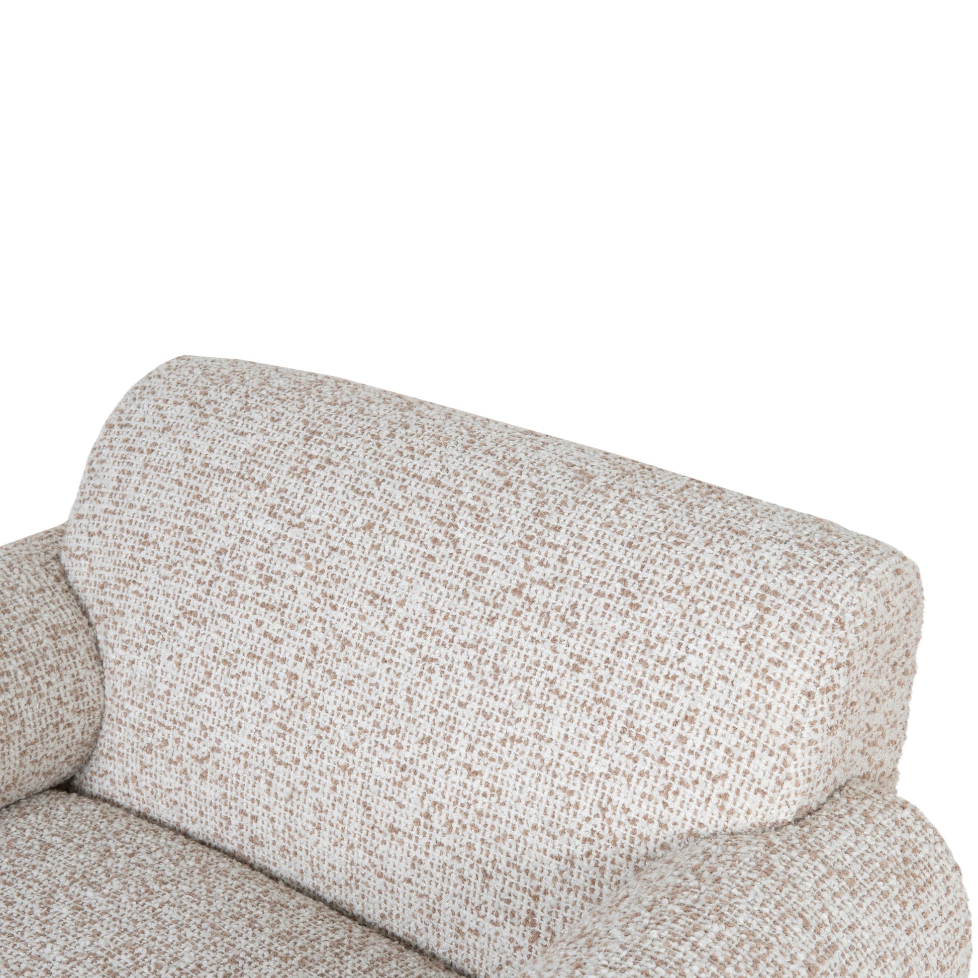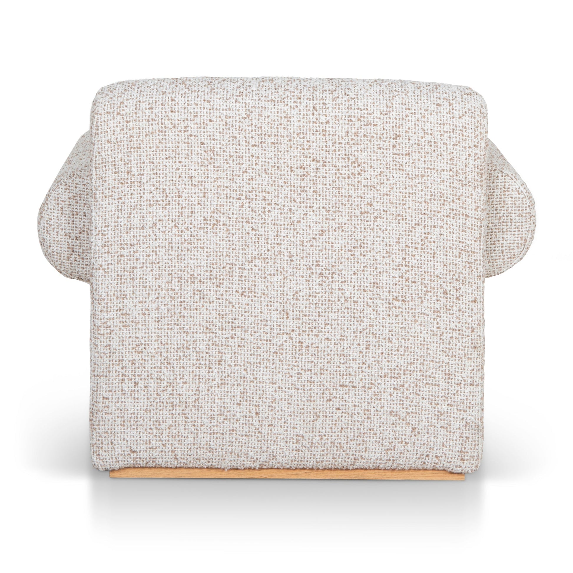 Experience refined comfort with the CLC10143-MY Fabric Armchair in Sand Beige. Its oak wood frame and legs exude timeless elegance.