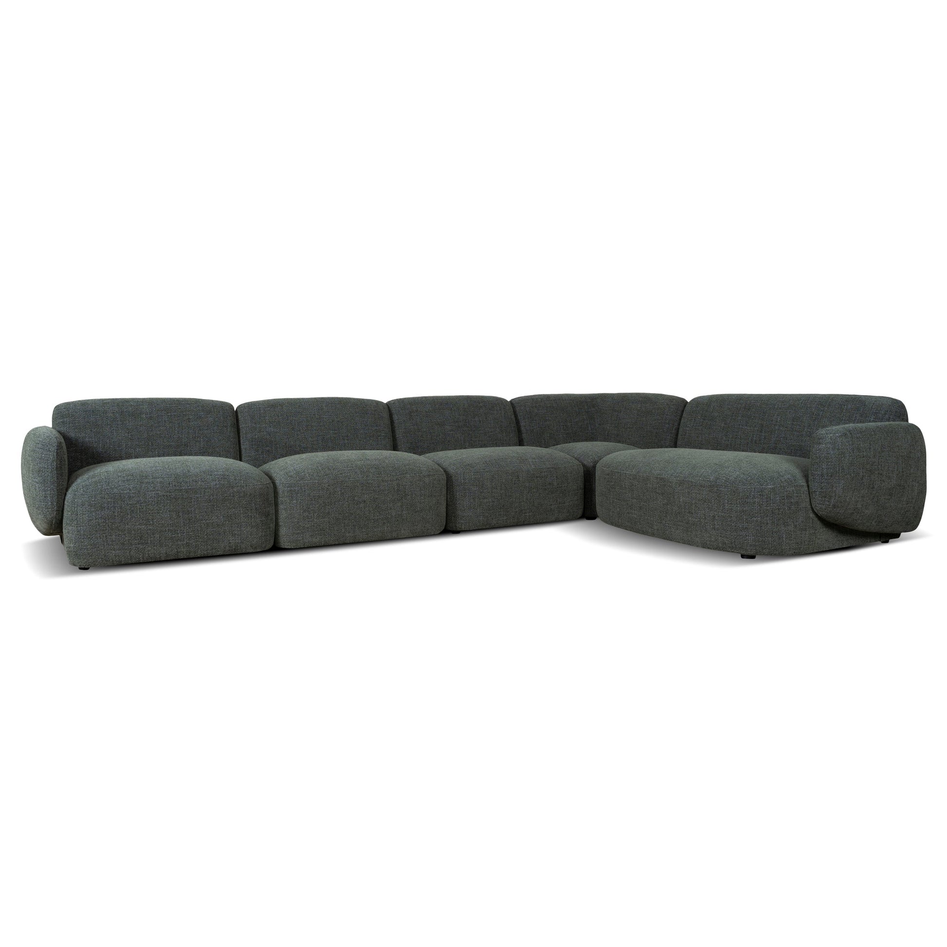 The CLC10472-KSO Right Chaise Modular Sofa in Moss Green combines soft curves with clean, tailored lines, striking the perfect balance between comfort and structure. Its rich moss green upholstery brings depth and an earthy elegance, making it an ideal statement piece for grounding open-plan interiors or setting a moody, contemporary tone.