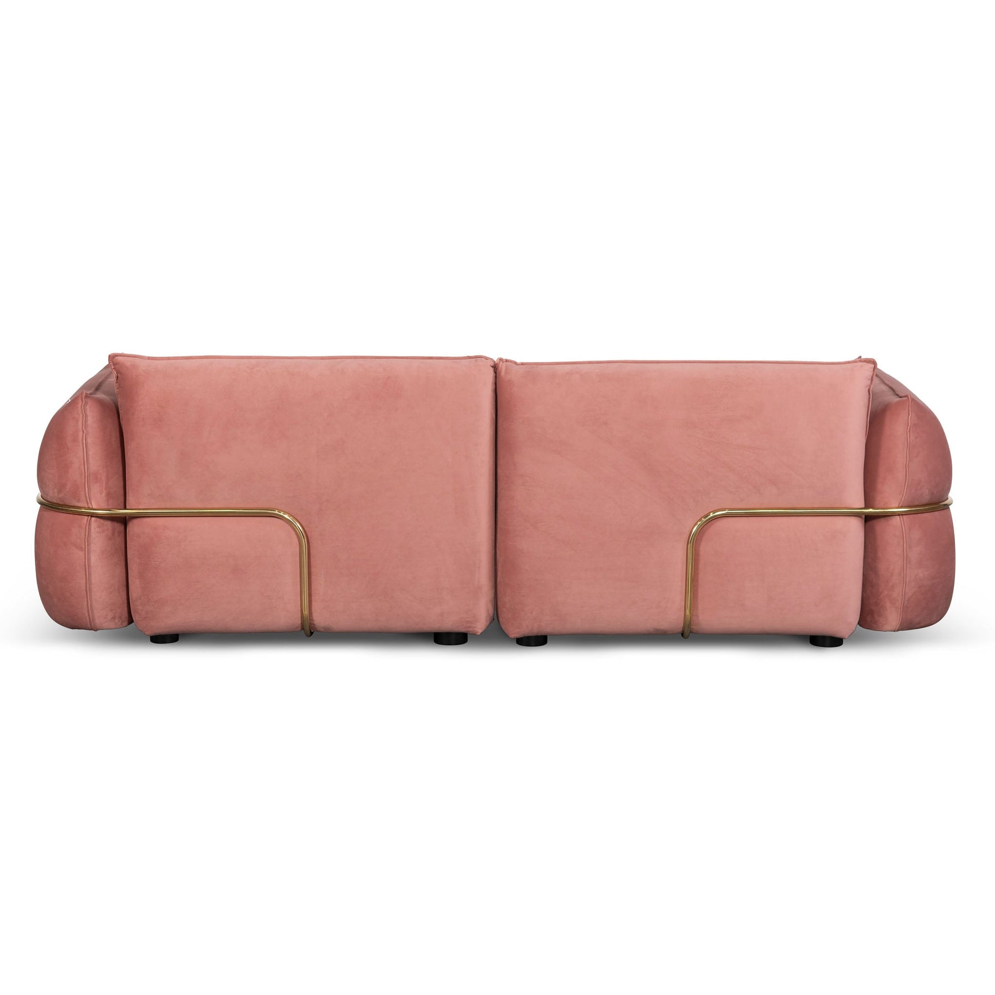 CLC8180-IG 3 Seater Sofa - Blush Pink Velvet With Brass Frame