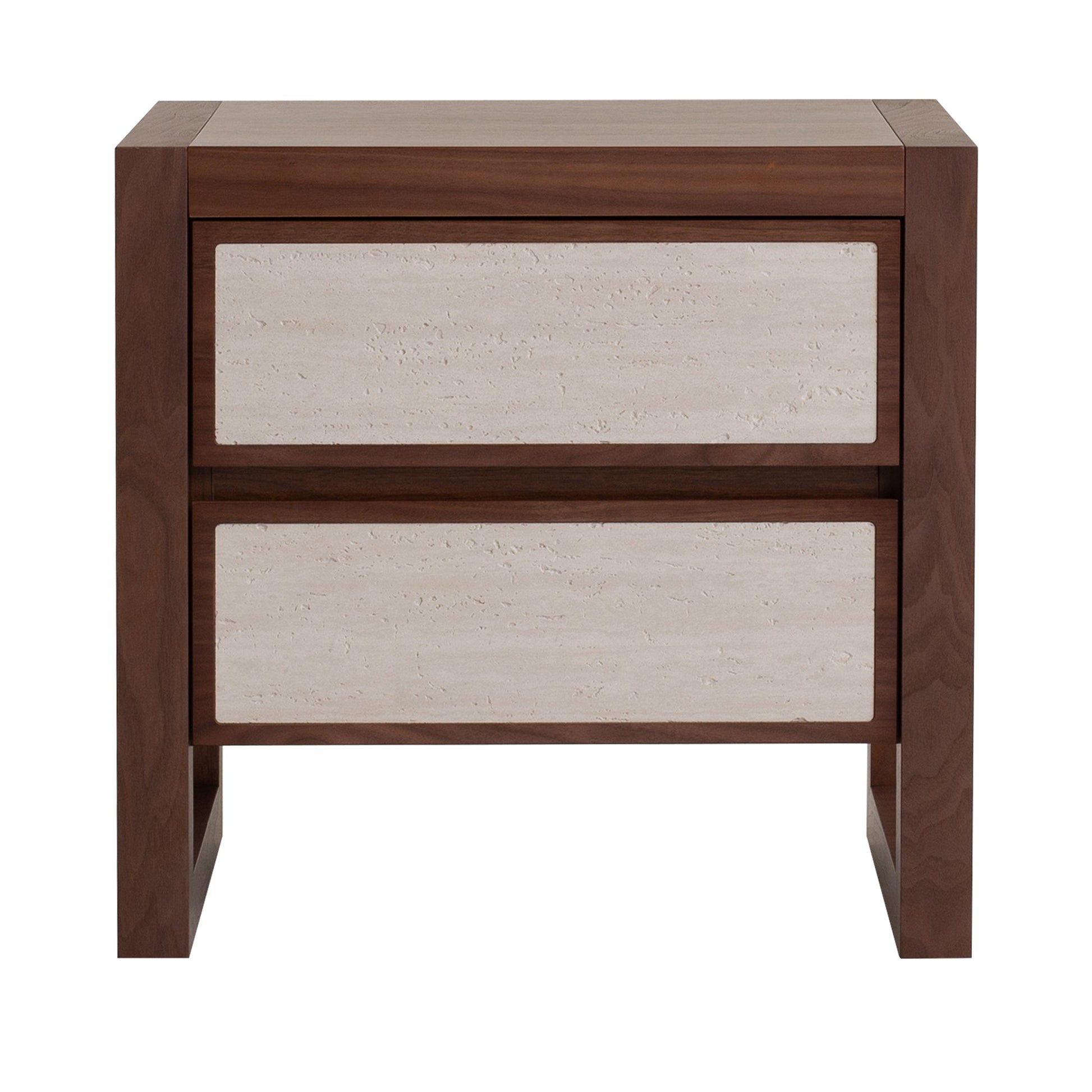 The standout feature of the CST10020-IG Bedside Table is the flexible stone panels on the drawer fronts. These panels create a striking contrast with the rich walnut finish, adding elegance and modernity. The natural texture and color of the stone panels bring a unique visual element.
