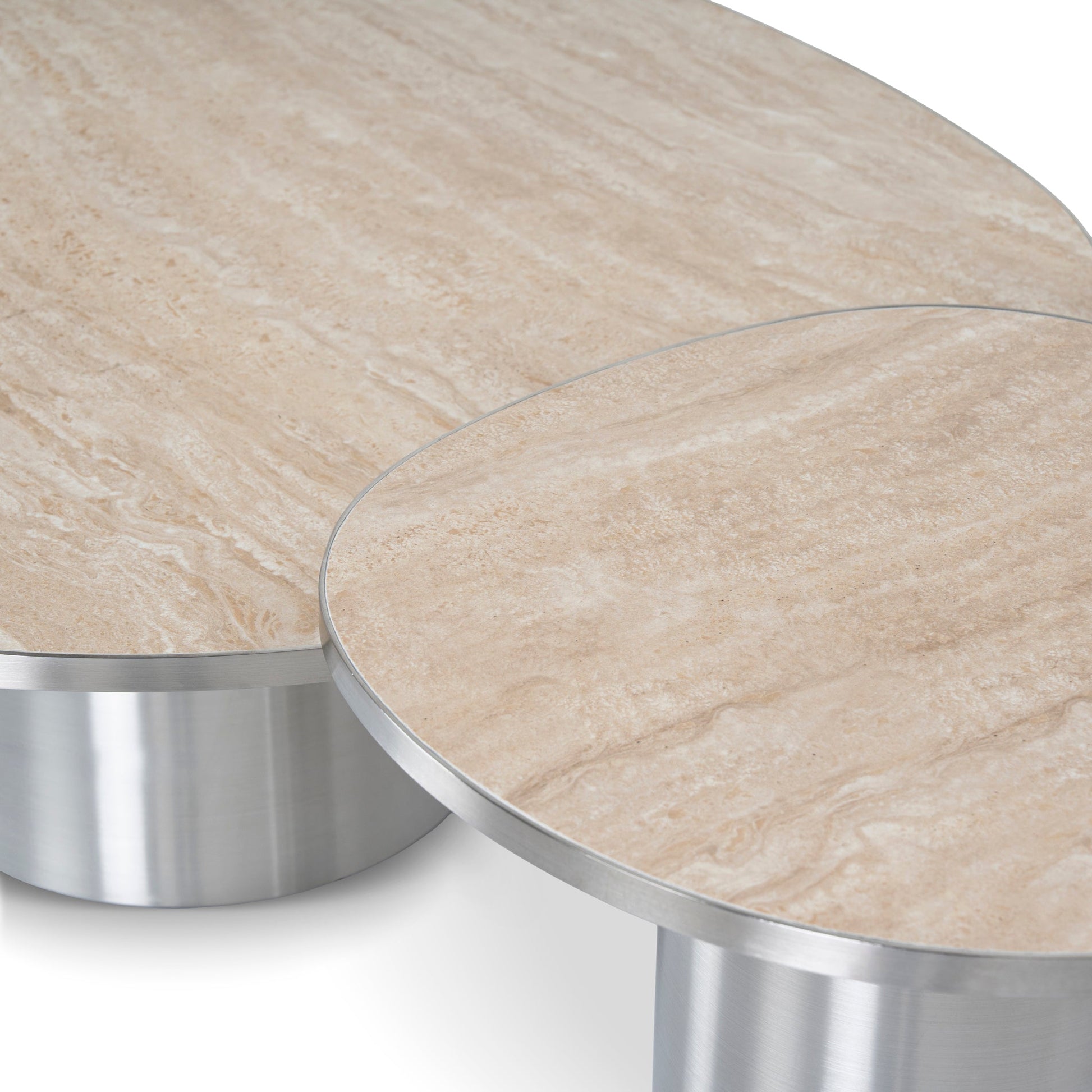 CST10316-NY Nested Porcelain Coffee Table Table - Stainless Steel