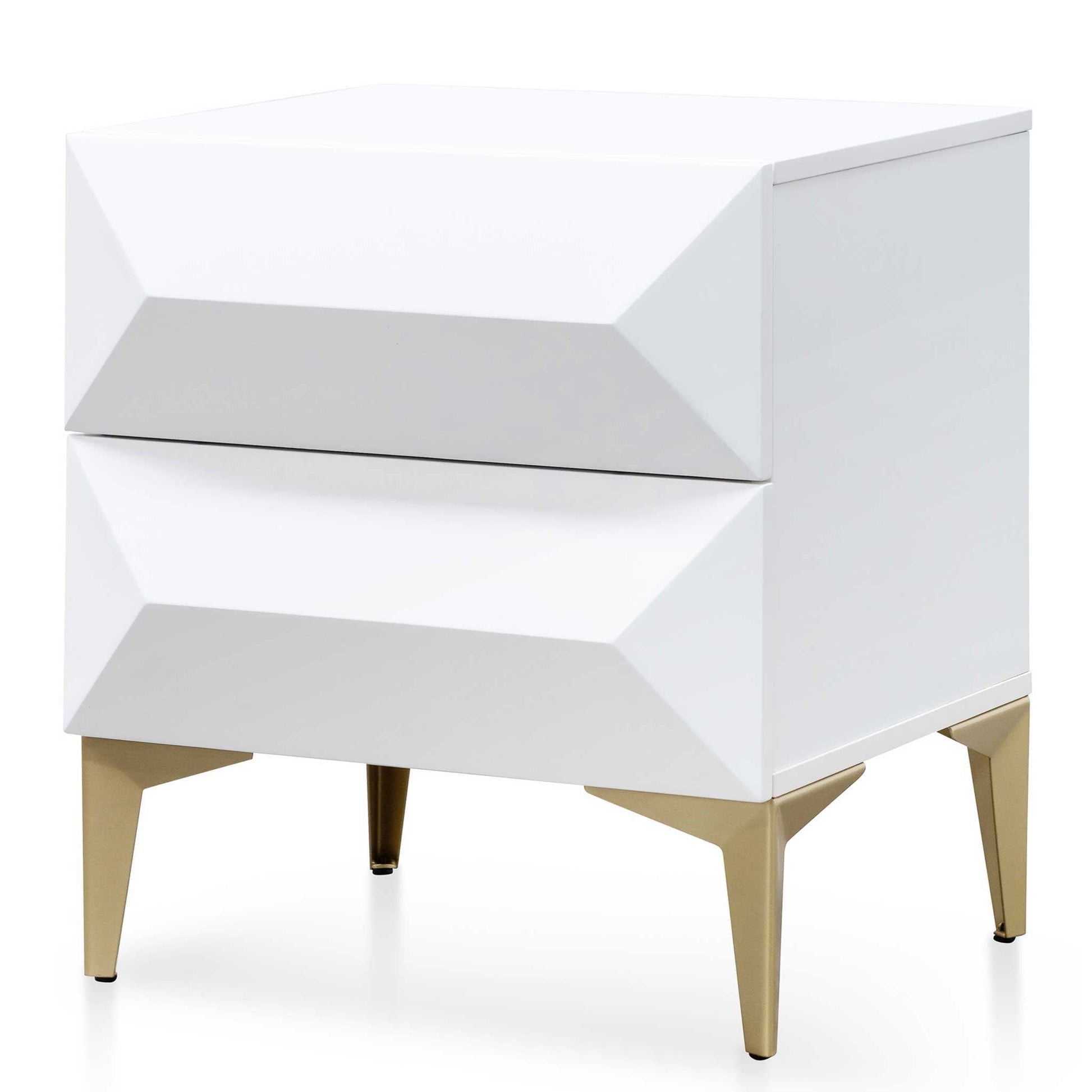 Add the vibrant and eye-catching form of CST6410-IG Wooden Side Table - White with Gold Legs into any living area for added storage and display. On top of being functional, CST6410-IG provides a natural visual interest into the room, with its pyramid drawers and brushed gold legs.