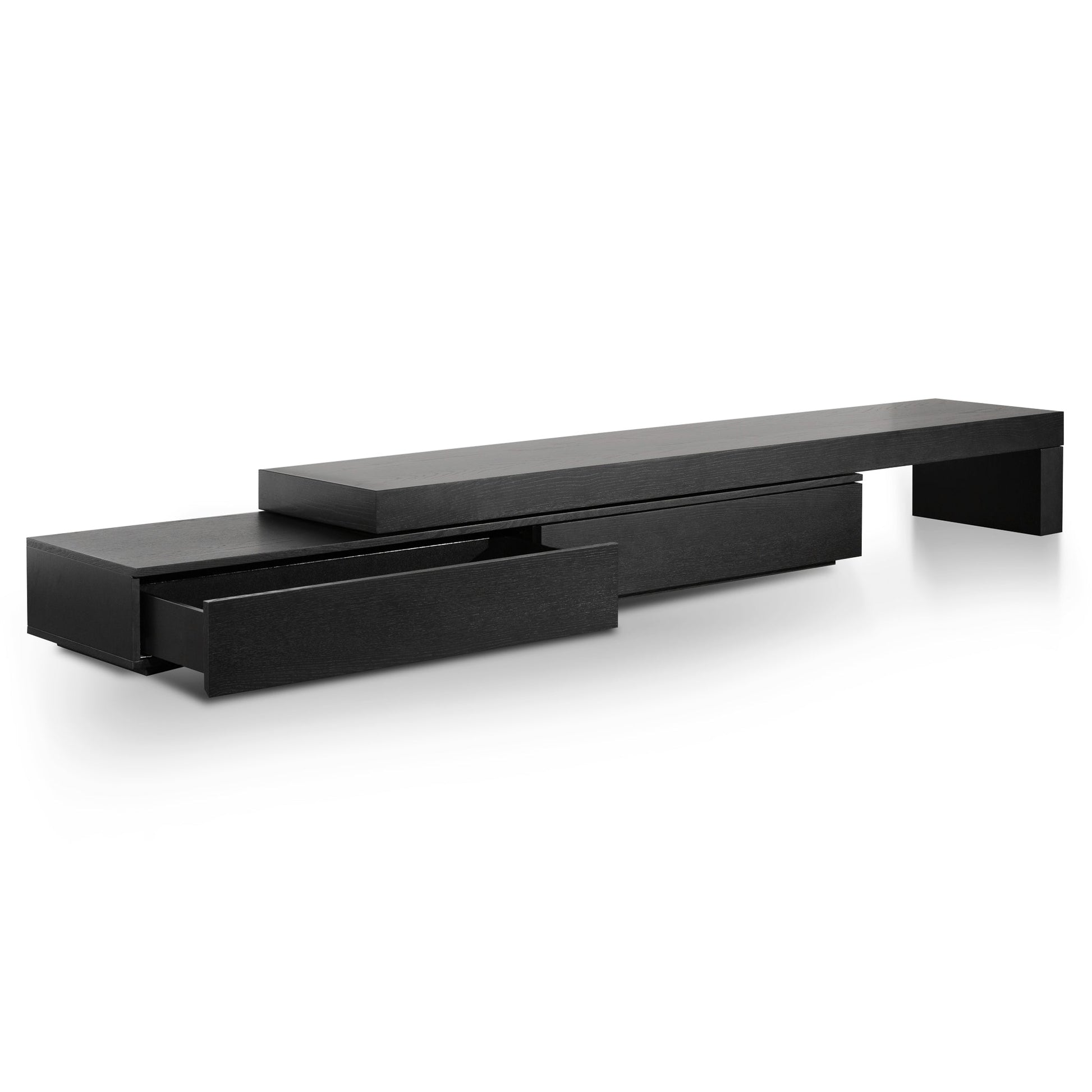 Feature the inherently captivating and asymmetrical form of CTV6132-CN Extendable Entertainment TV Unit - Black Oak for elevated and style-forward lounging. Its unique silhouette offers innovative looks with a functional nature.