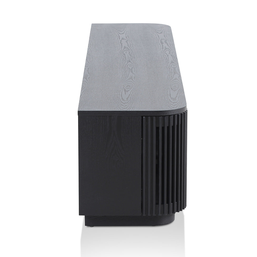 Elevate your living room with the CTV8580-DW 2m TV Unit - Full Black. It has doors that aren't just for show; they're a statement of your refined taste. Their clean lines and flawless black finish create a stunning visual impact, while the subtle texture of the ash veneer adds a touch of natural beauty.
