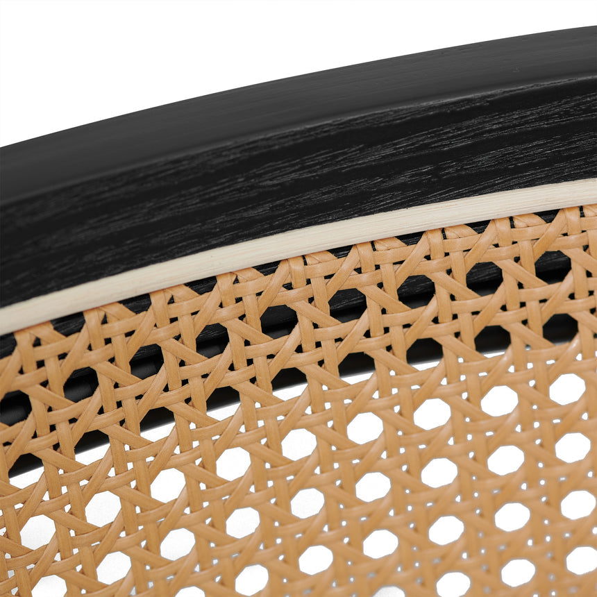 96% Polyester and 4% Acrylic upholstery Fabric has a durable Spec Grey finish Seat frame is made of Plywood Round seat is filled with foam Oval backrest is woven in perforated patterns Black powder-coated metal legs with floor protectors 130kg weight capacity Minor assembly required