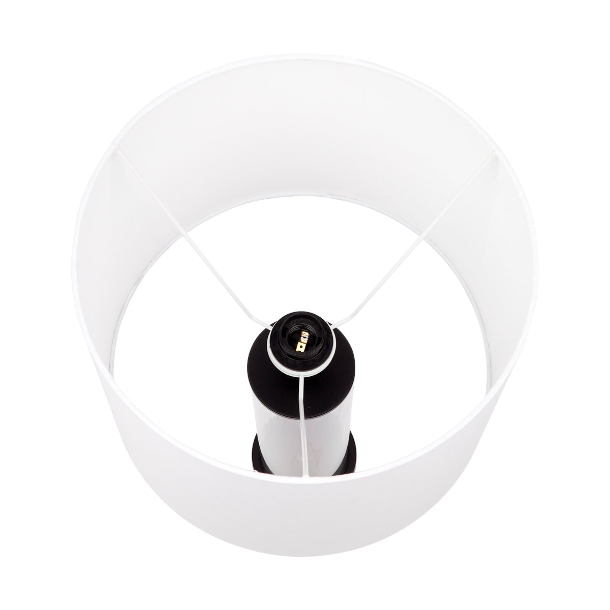 Elegantly illuminate your living space with the East Side Table Lamp. The clear glass body with matte bronze black metal rod and trim compliment the base. The contemporary interpretation of a classic lamp design. Our East Side lamp is offset with a white drum cotton shade.