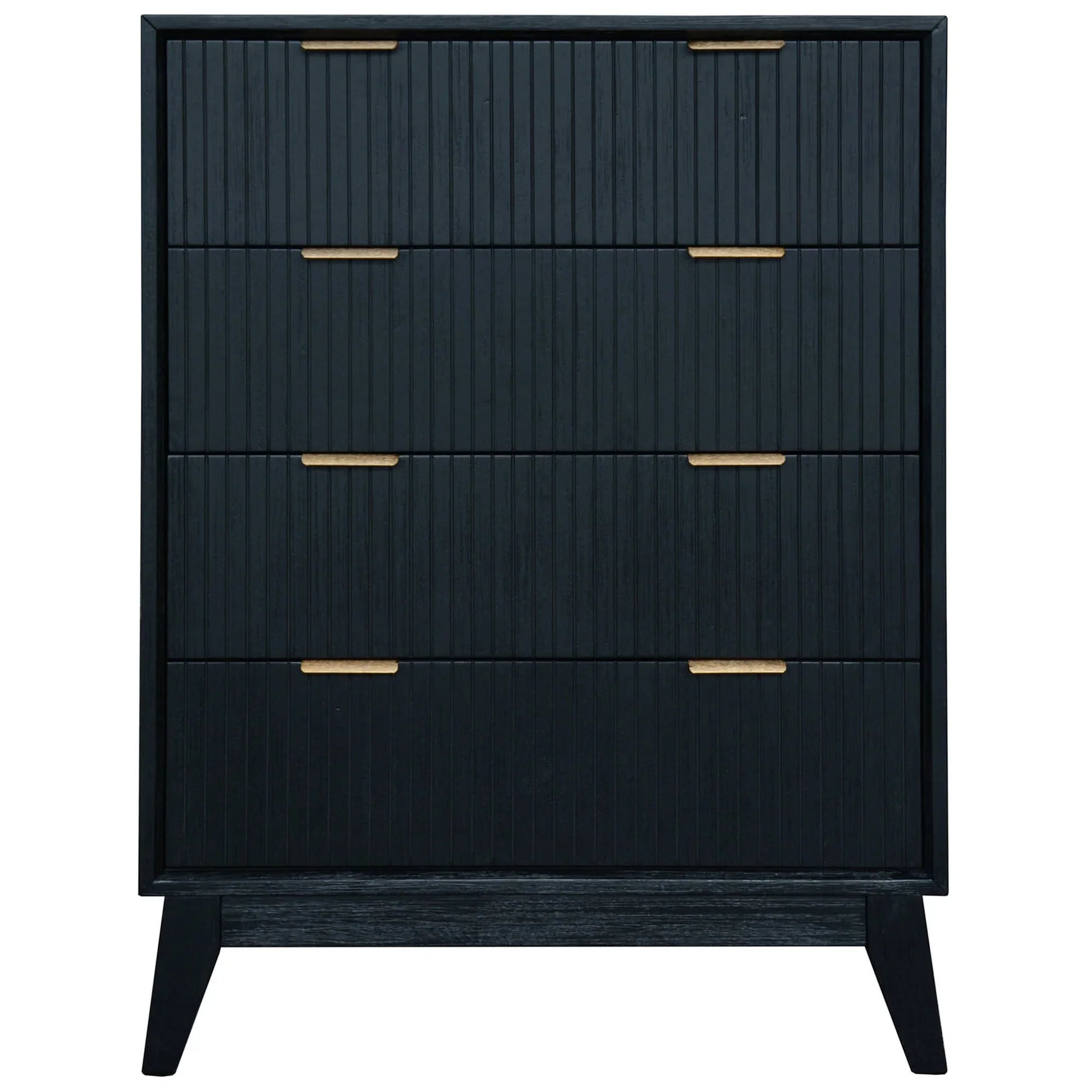 Ella Queen Bed with 1 Tallboy and 2 Bedside Tables Set - Black