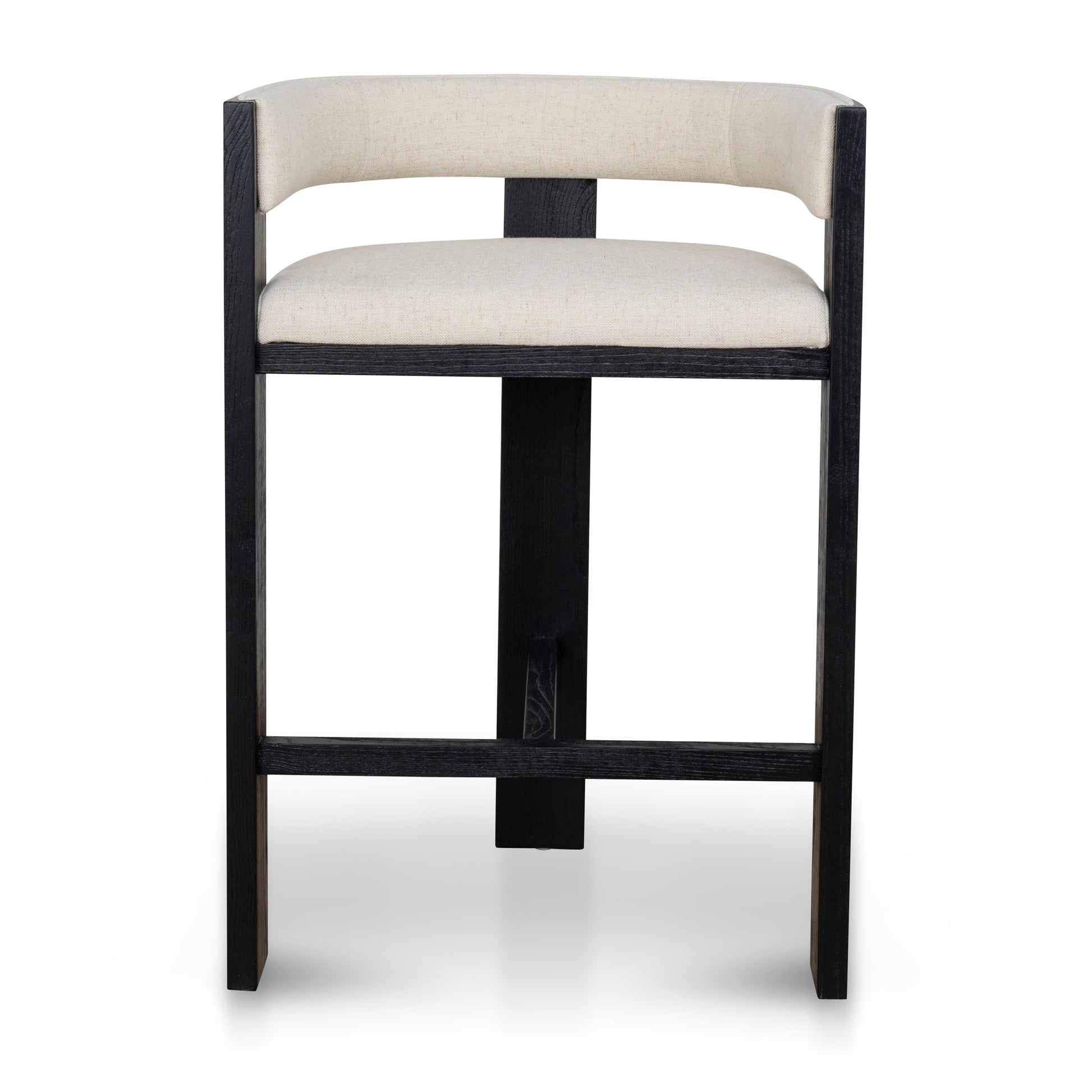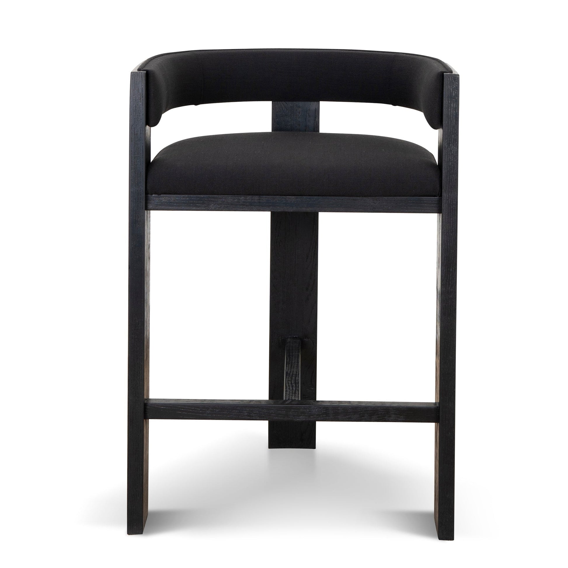 60% linen 40% cotton upholstery Elm timber construction Foam cushioning Full black finish Open-back design with wrap-around backrest Rectangular frame with built-in footrest Modern design Weight Capacity: 120 kg Product comes fully assembled