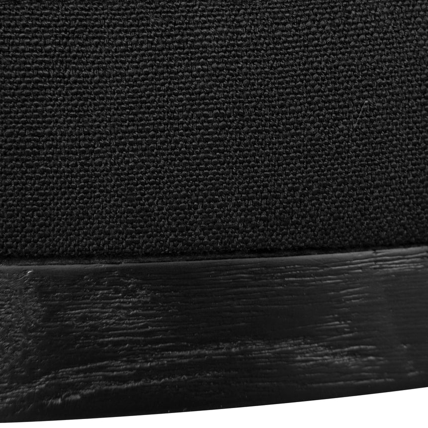 Seat and backrest upholstered in 60% Linen & 40% Cotton Fabric has a black 100% Foam filling for soft medium firmness Barrel back tripod frame made of solid ELM wood finished in black Crisp angles and curving contours 3× thick flat legs upholding the arched contour Suitable for commercial use 120kg weight capacity Product is fully assembled