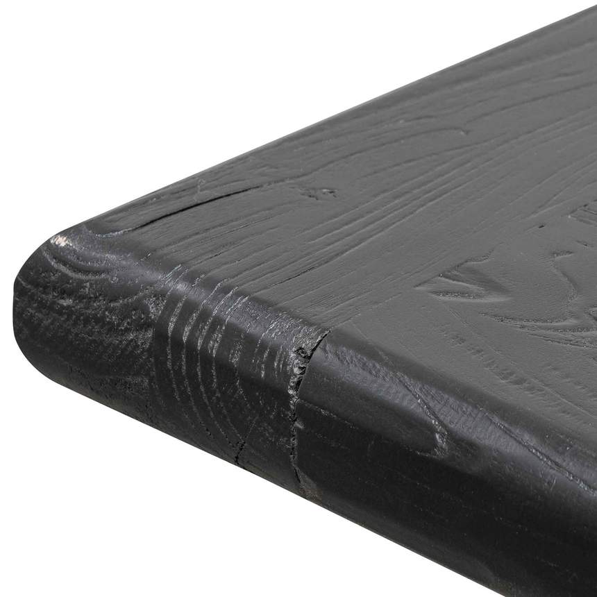 Reclaimed elm wood veneer with engineered wood Untreated matte black finish to showcase the natural pattern of reclaimed wood Square turned pedestal base with a flat and rectangular end Additional support beam for lasting structural integrity Seats 8 people Product is flat packed and requires two-person assembly Note: The timber used in this range is recycled elm timber. The tables are handmade and have been prepared to give the table top a unique finish. The table will naturally have distinctive characteristics such as cracks, splits and imperfections, which are then filled and evened out using square timber fillings where required for single piece table tops. The raw and rustic features should be appreciated as part of the look and are not manufacturing defects. A slight bow on the table top is characteristic of reclaimed timber due to its oversized length.