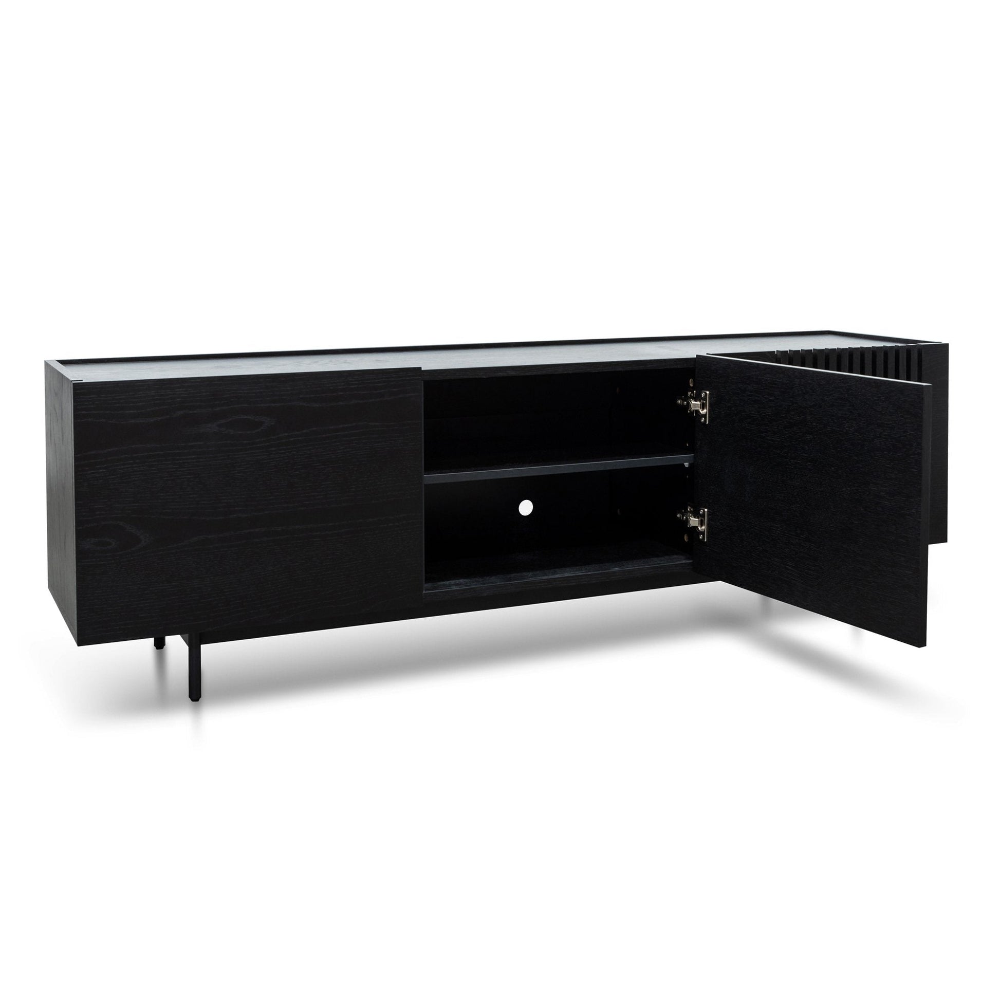 The full black design of the TV Entertainment Unit is a chic addition to any home. The combination of large hidden storage with a clean minimalist design ensures Onito is both a stylish and functional option for any living space. This entertainment unit maintains its simple appearance by using modern handleless cabinets.