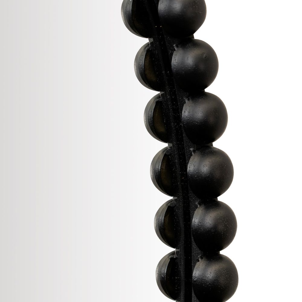Inspired by vintage glamour, the Esme oval wall mirror has been reinterpreted for modern living with its bold 51 x 76cm oval iron frame embellished with oversized round beading in a chic matte black painted finish. Effortlessly timeless, the striking simplicity of the Esme oval wall mirror in black easily blends with both contemporary and classic interiors, adding a subtle sense of playfulness. Also available in gold leaf.