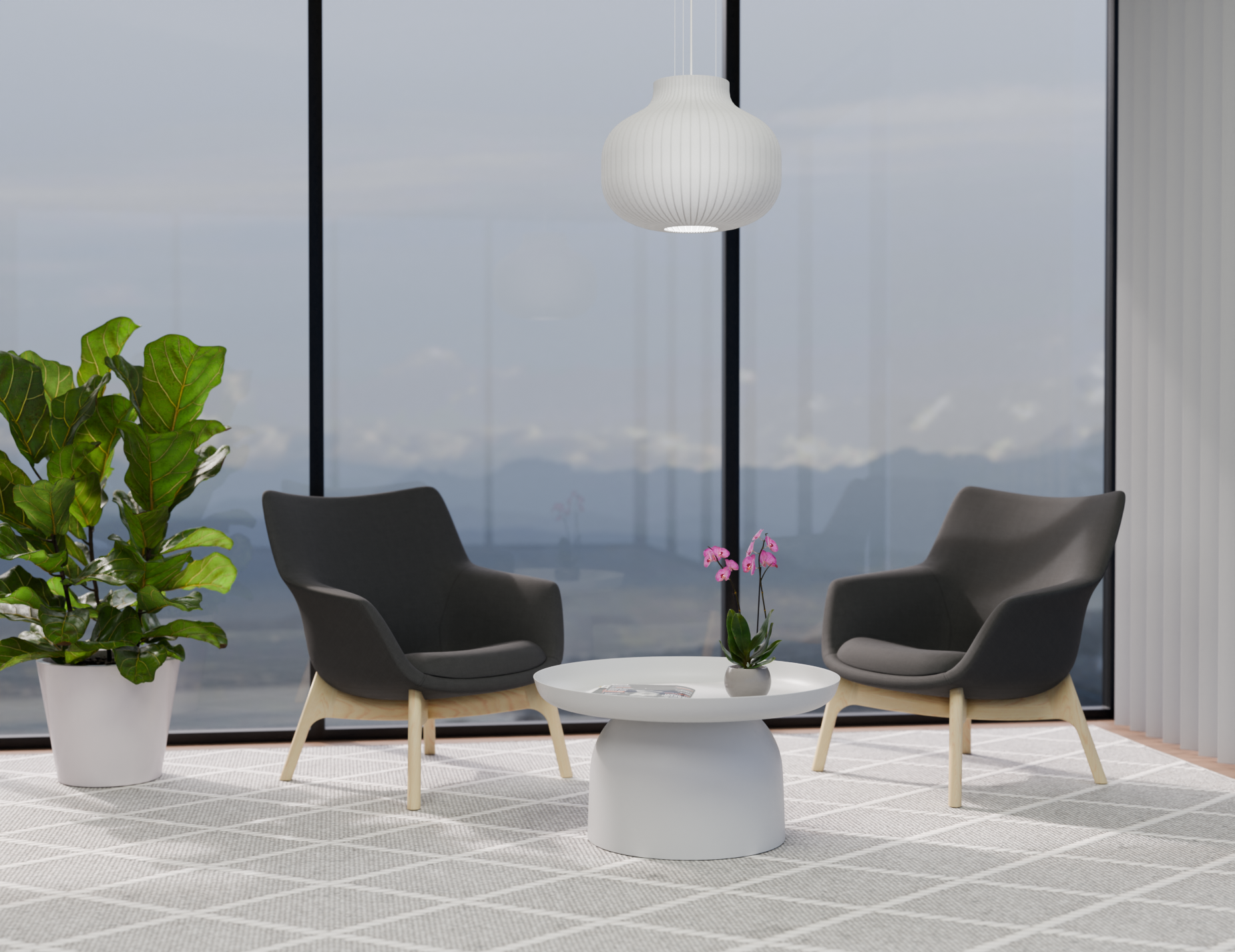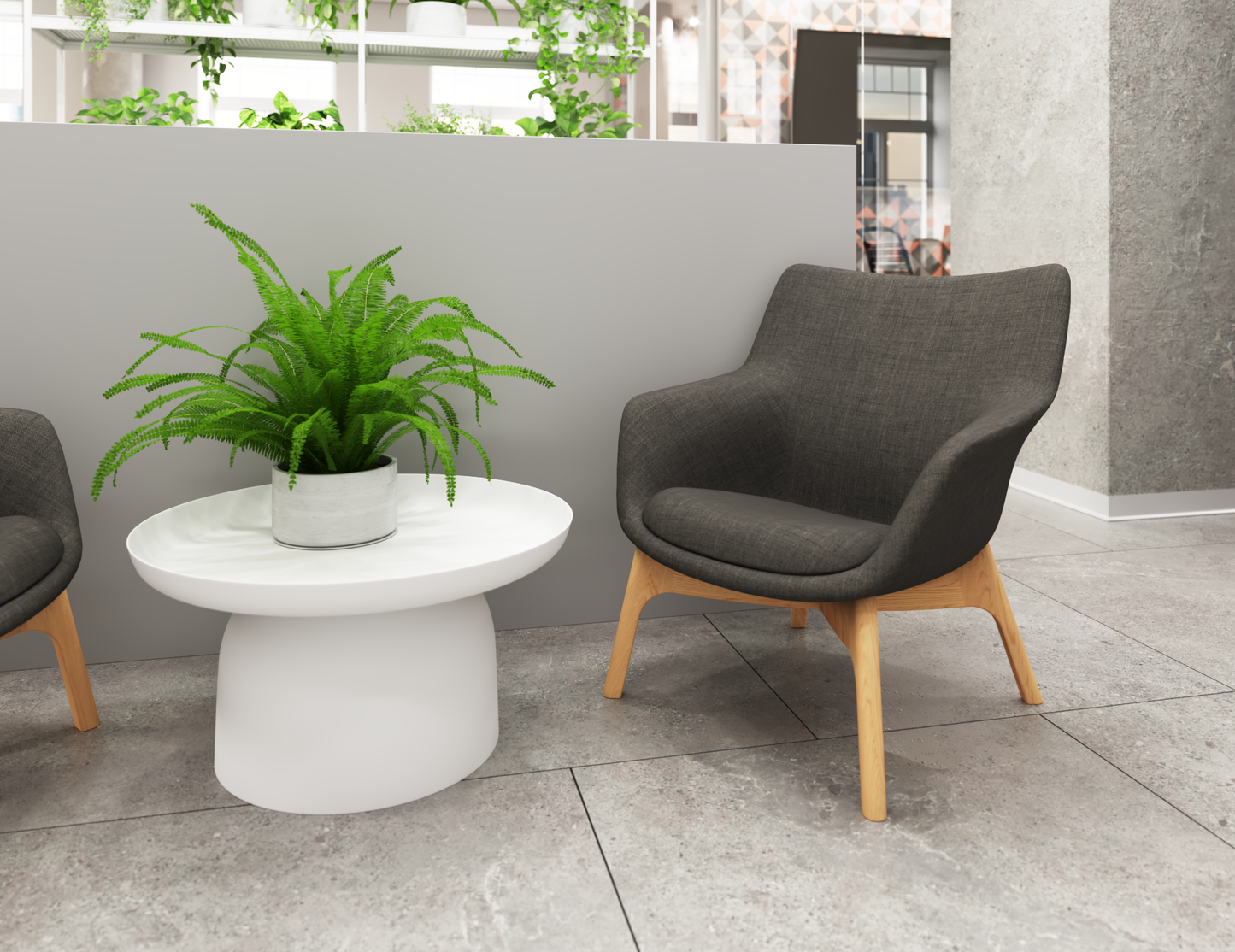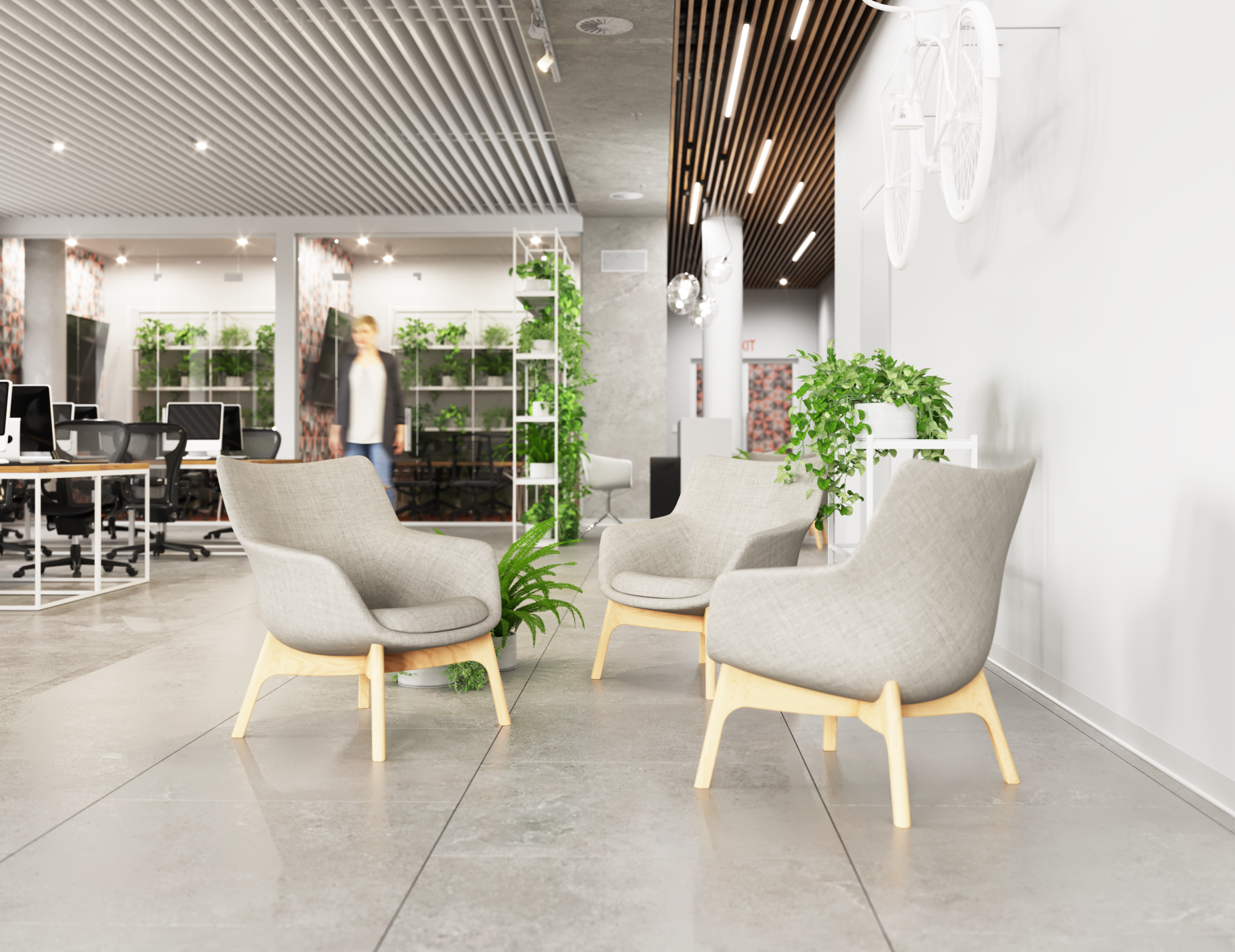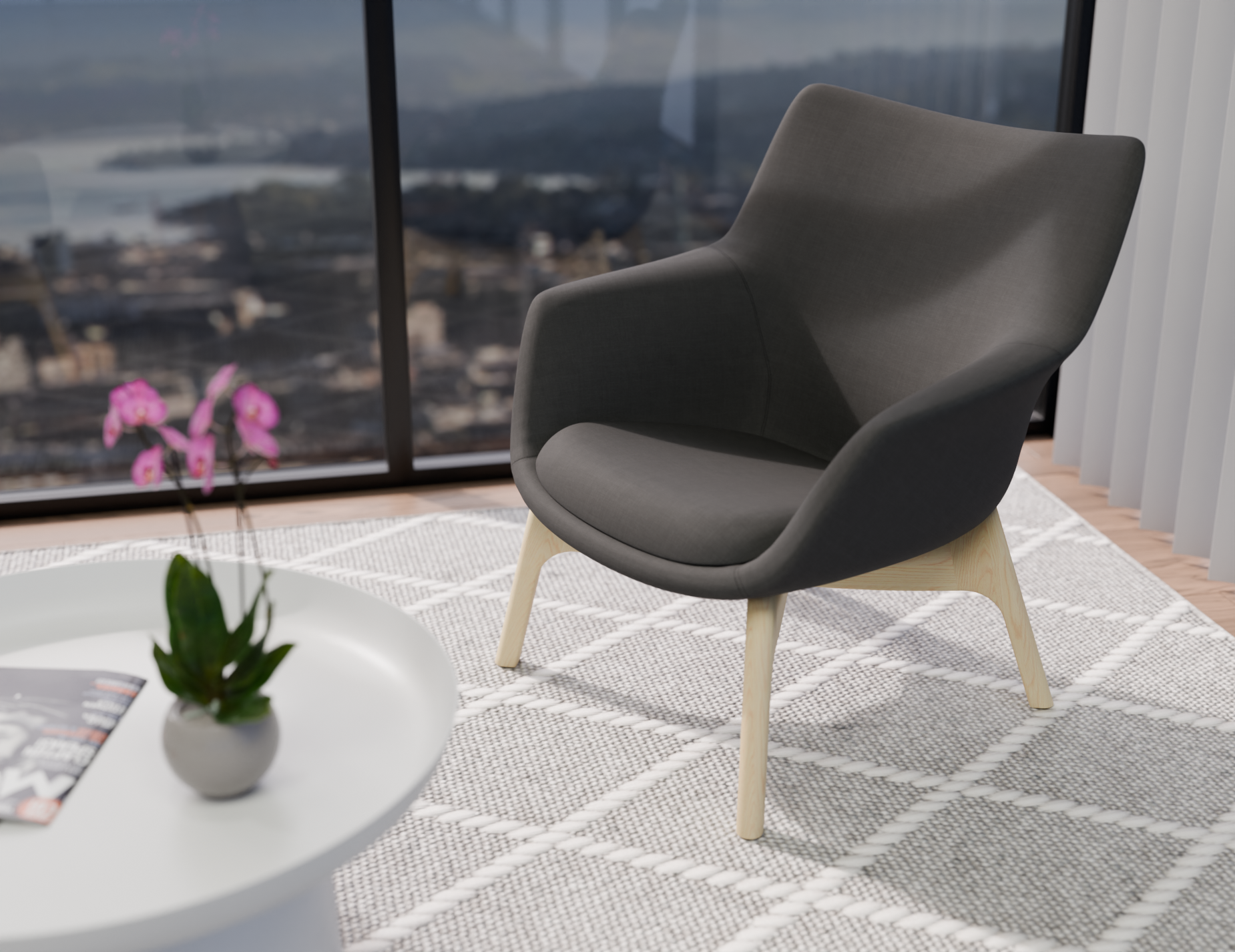 Elevate your commercial space with the Flow Armchair, available in Light Grey and Dark Grey upholstery options. Its sleek Scandinavian-inspired design makes it a sophisticated addition to any professional setting, from modern office lounges to upscale hotel lobbies.