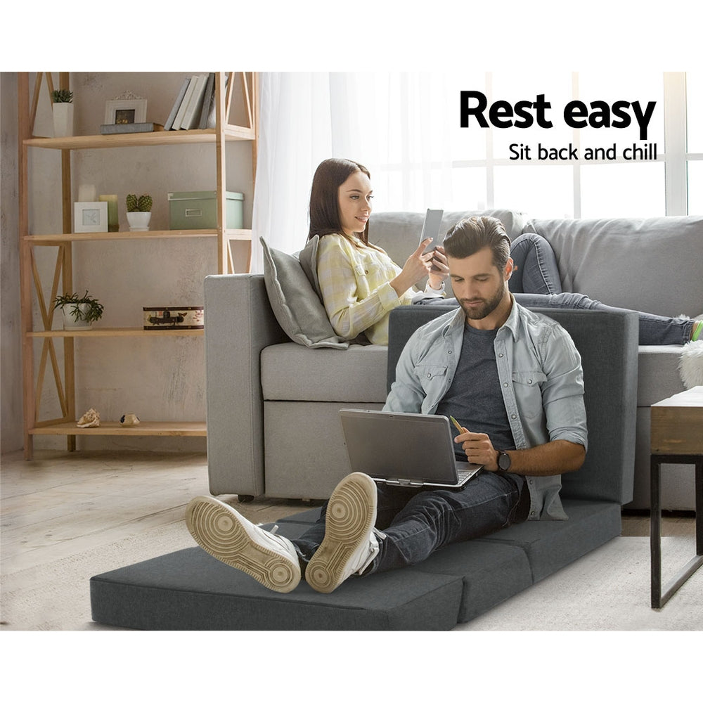 Introducing the Giselle Bedding Foldable Mattress Folding Foam Bed Floor Mat in Grey - the perfect addition to any home. This versatile mattress can be used as a couch during the day and easily transformed into a comfortable bed for sleepovers or unexpected guests. It's also great for small spaces such as tiny city apartments, residential colleges, and even for camping and road trips. The premium wear-resistant faux linen fabric cover is soft and breathable, while the high-density foam provides ample support. Plus, the cover is removable and washable for easy maintenance.
