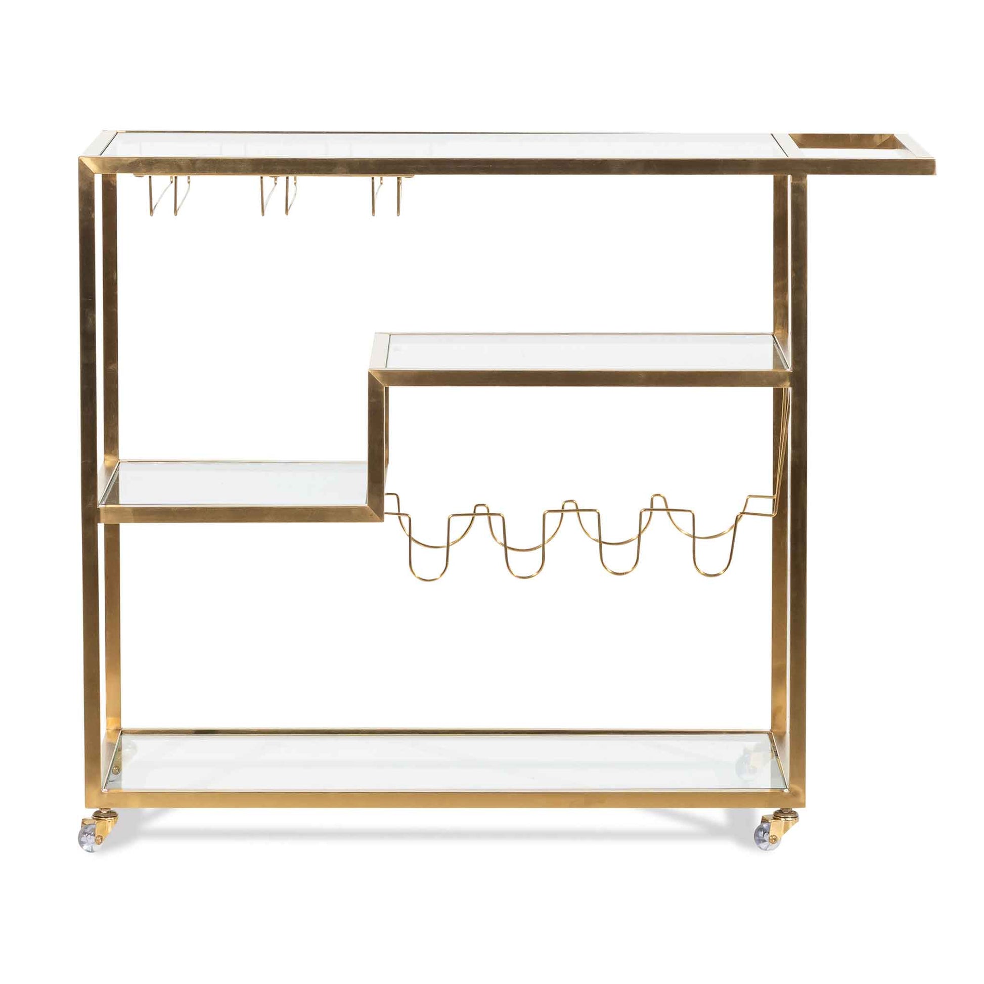 - Storage: Brushed gold rails designed to store wine glasses and bottles