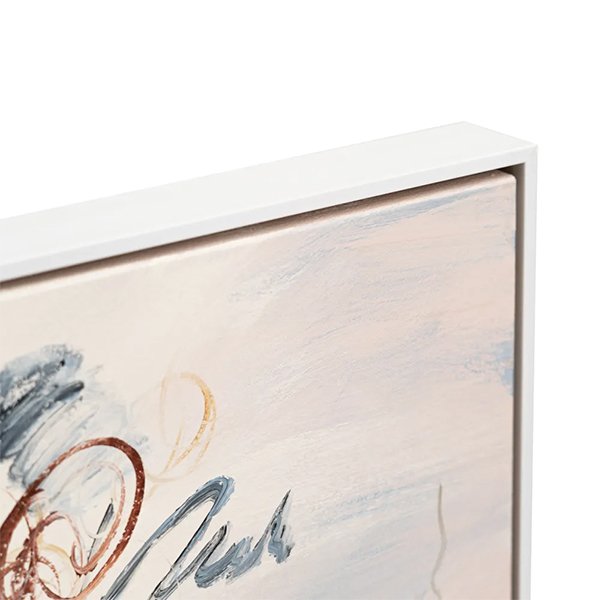 A modern composition that is free spirited yet beautifully balanced, graffiti oil on canvas combines fluid shapes with abstracted linework in an earth inspired colour palette of graphic movement. Injecting interiors with a sense of urban cool, the hand painted graffiti oil entices with layers of delicate tone and texture creating an artwork that is bold and interesting without being overstated. Encased in a matte white shadow box frame, graffiti oil on canvas makes a striking display at 140 x 110cm.
