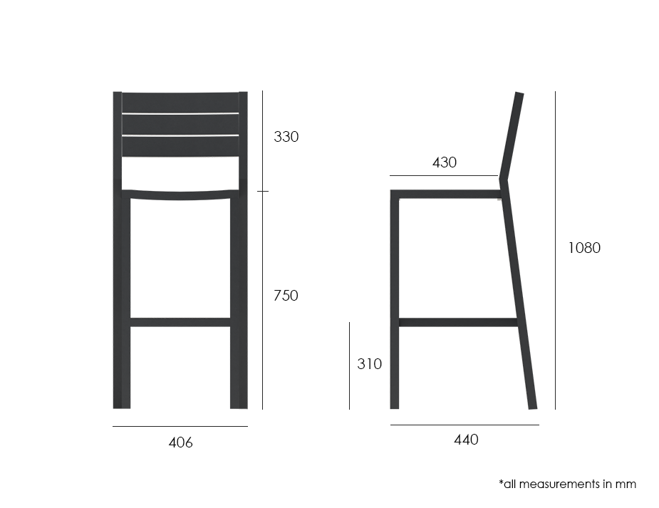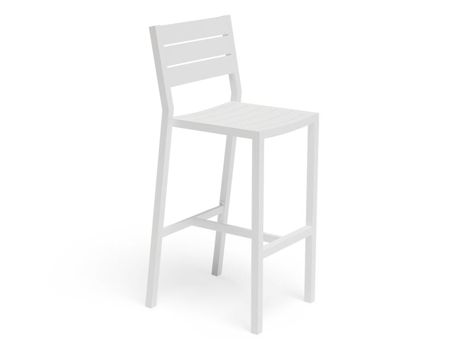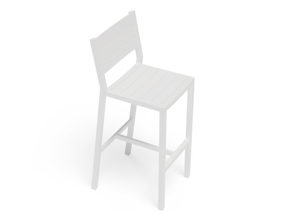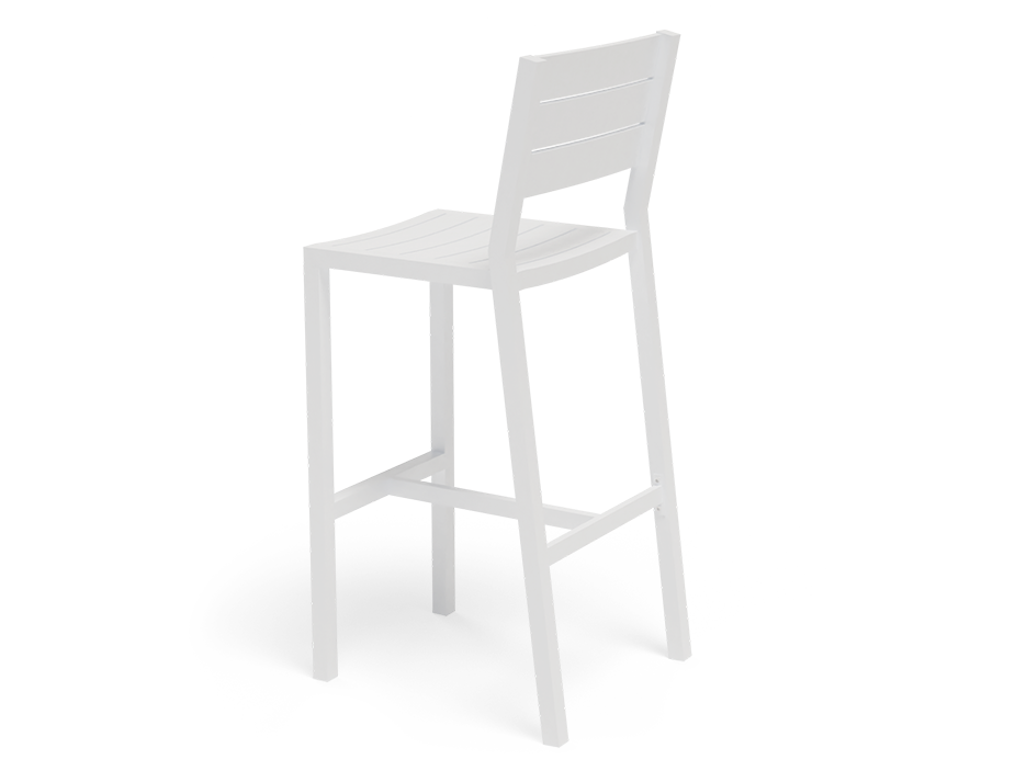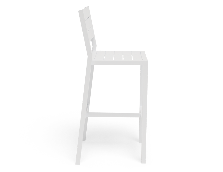 With a seat height of 75cm, seat size of 40cm W x 43cm D, and an overall height of 108cm, the Halki Stool provides a comfortable seating experience for guests and customers. The footrest height of 31cm ensures added support and comfort for longer periods of use. Crafted from matt white powder-coated aluminum, the frame is not only stylish but built to last, even in busy environments.