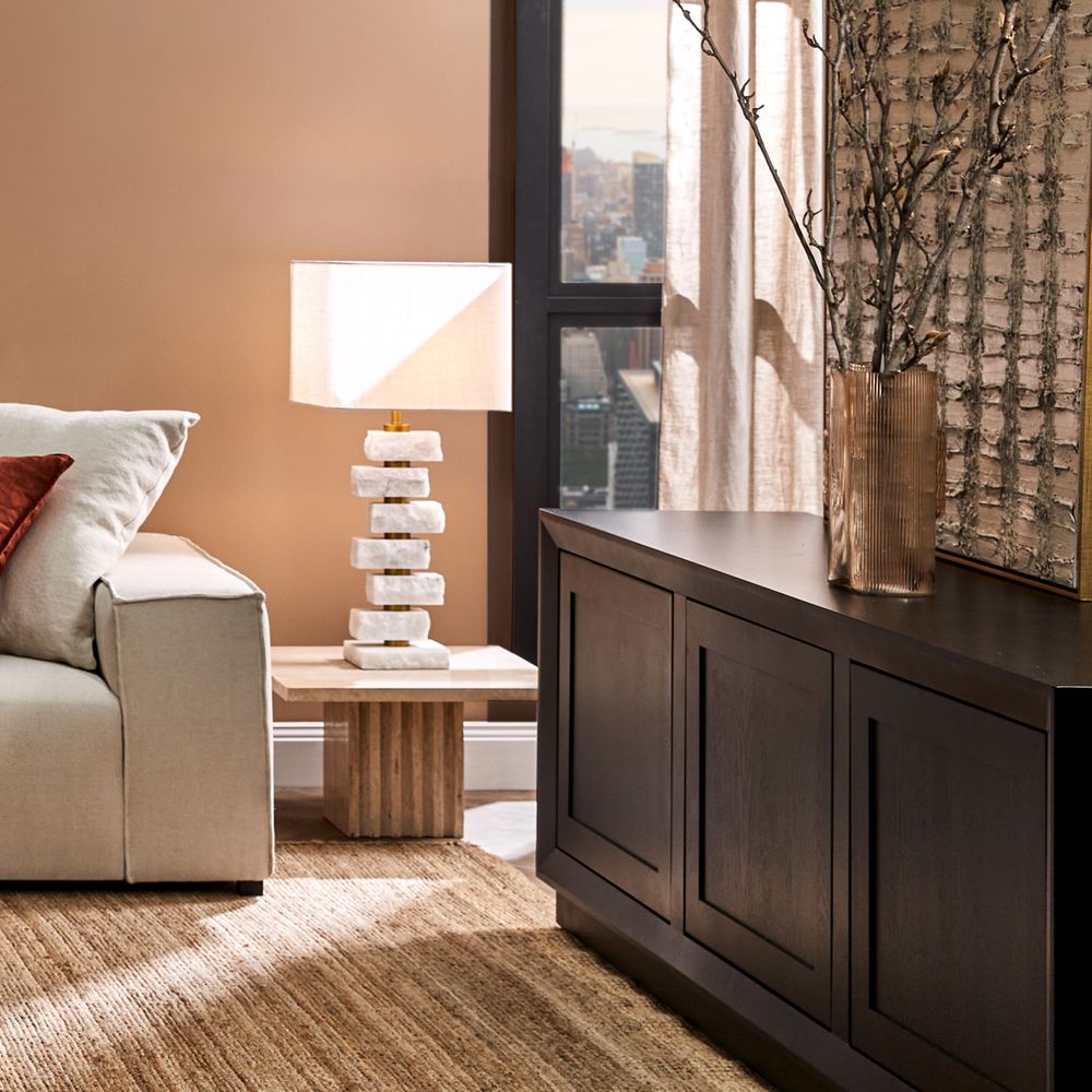 Elevate your home décor with the captivating Hamburg table lamp, featuring a distinctive stacked stone base that radiates modern sophistication. The geometric design is perfectly paired with a sleek, rectangular white faux linen shade, gently diffusing light to create a warm and welcoming atmosphere. Ideal for contemporary or minimalist spaces, this lamp brings a touch of elegance and artistic flair to your living room, bedroom, or office.