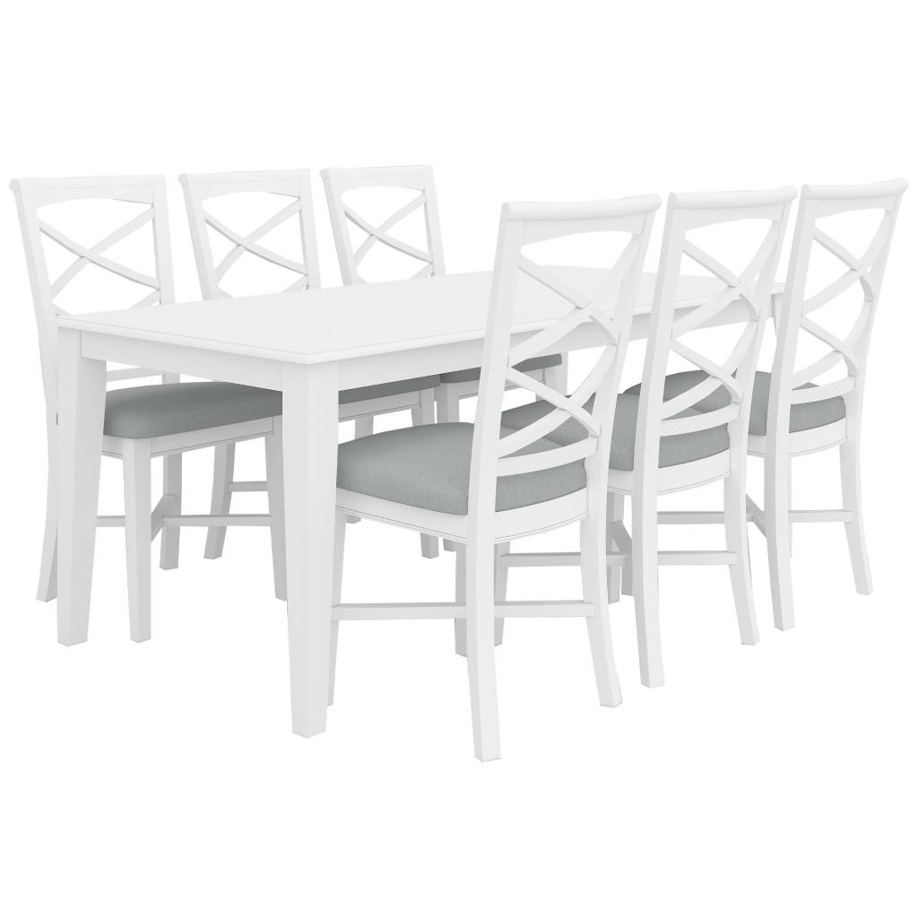 Hamptons Wooden Table with 6 Chairs Dining Set - White