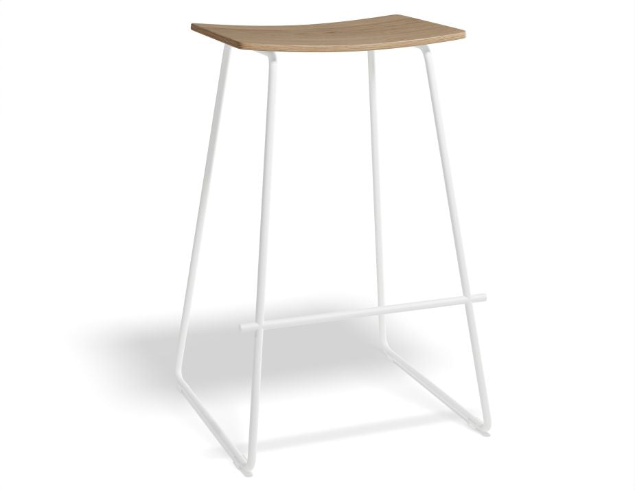 Its compact size and comfortable design make it an excellent choice for use at counters, bars, and other seating areas, while its natural oak seat and white powder-coated steel legs offer a modern and sophisticated look that complements any decor.